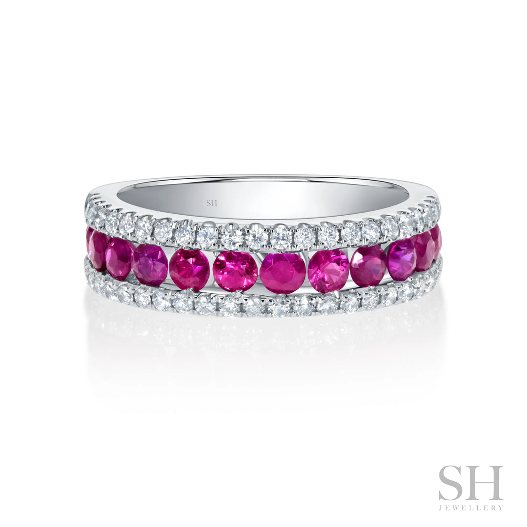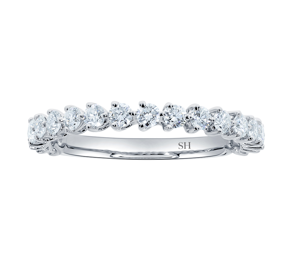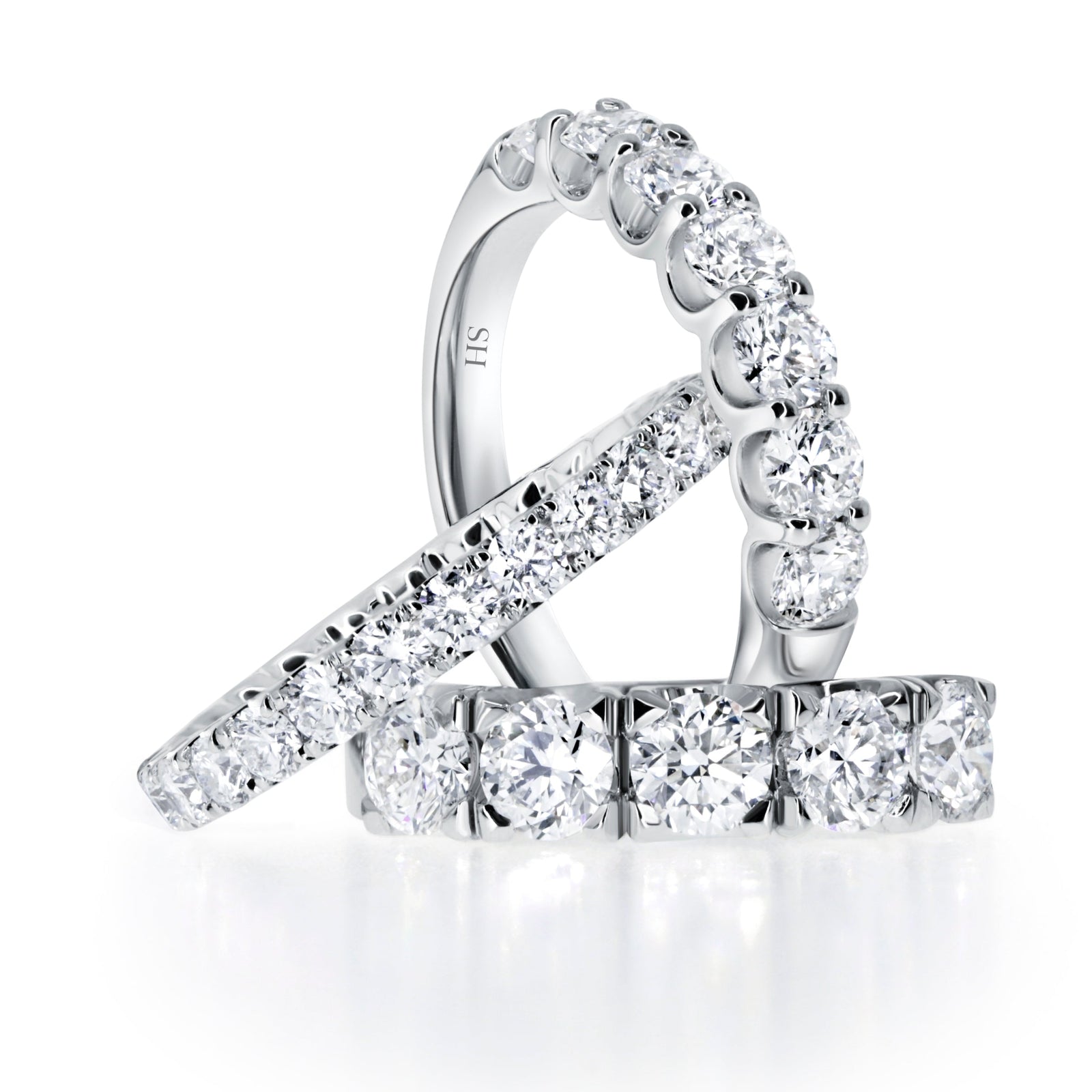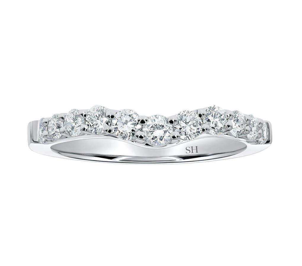 The SH collection of modern Australian wedding rings offers a contemporary take on traditional wedding bands. Contemporary wedding ring styles feature intricate detailing, various diamond setting types and curved wedding bands, designed to complement the feature diamond in an engagement ring.