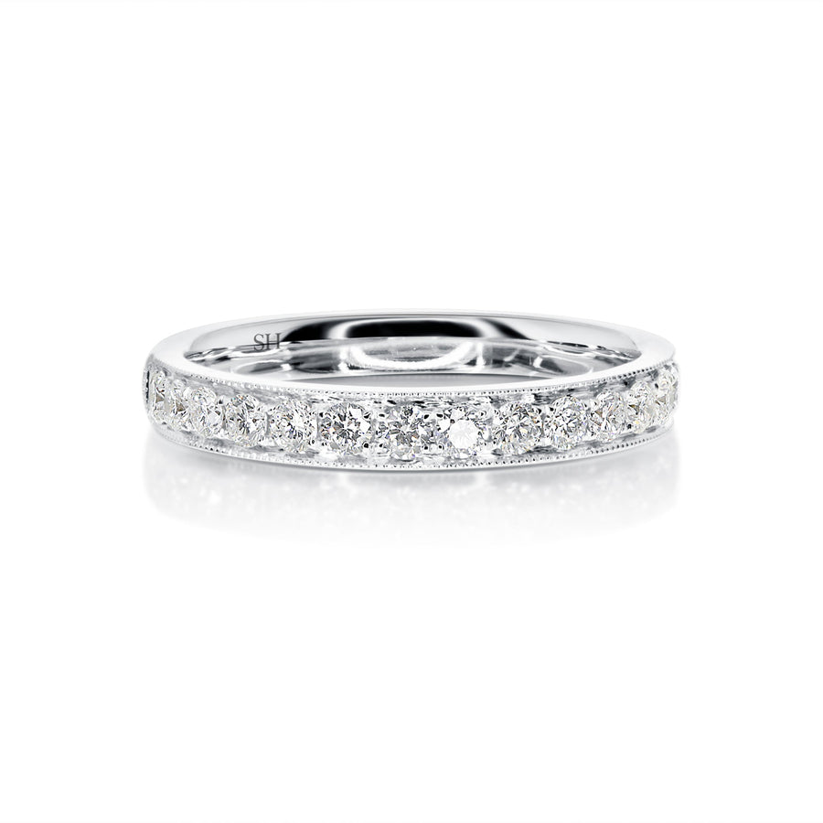 SH Jewellery is proud to offer an exclusively designed range of Grain, Channel and Bezel-Set women’s wedding bands in 18kt white, yellow and rose gold, featuring diamonds 3-4 grades above industry standards and 7-8 grades above most chain retailers.