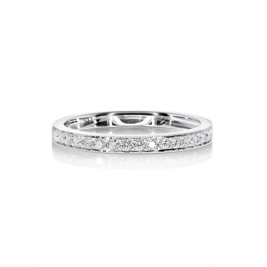 Our exclusively designed diamond women’s wedding bands are categorised by diamond setting type and include pavé, eternity, grain, channel, curve, prong and bezel- set diamonds. Although white diamonds are most popular, black diamond wedding bands are increasingly requested as an offbeat wedding band alternative for something more unique.
