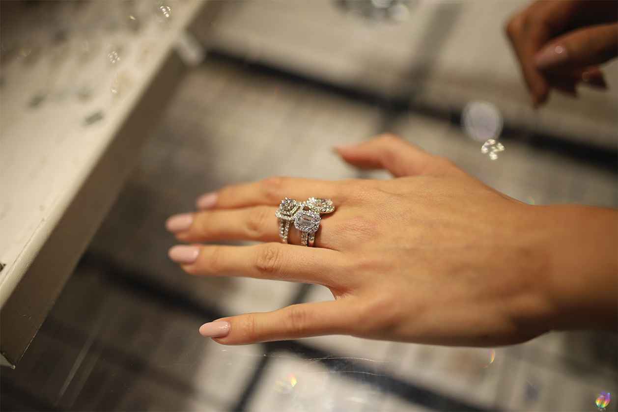 Based on your criteria, we'll present a selection of jewellery for you to try on and experience close-up. We have a generous inventory at SH Jewellery and you are welcome to try on as many products as you like until you find the perfect design, price and proportions for you.
