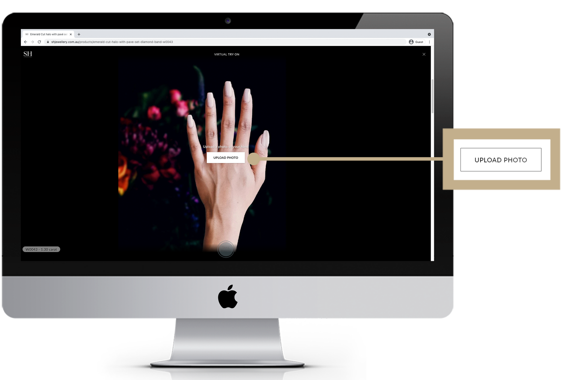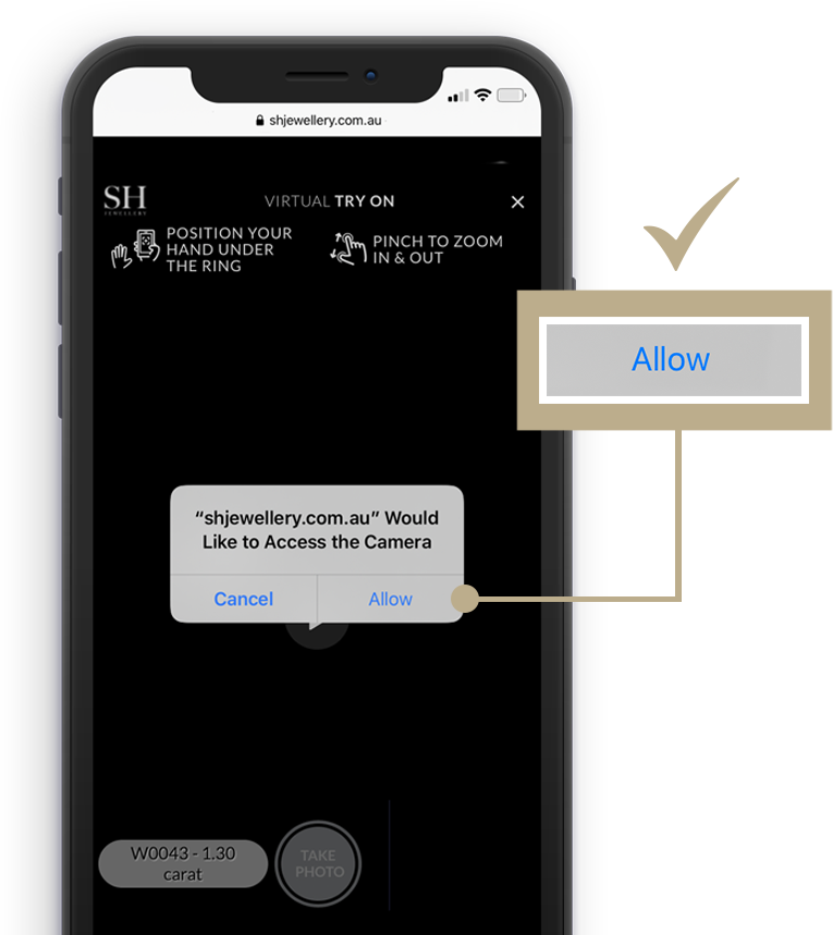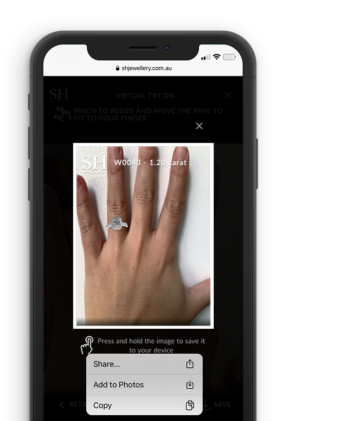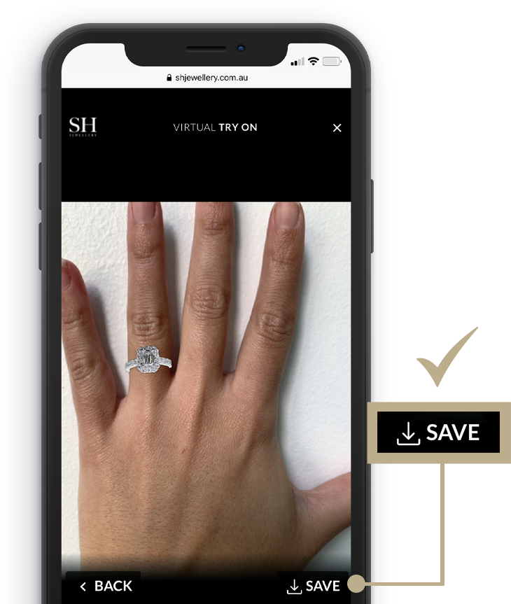 Hold your left hand in front of the camera and move your phone back and forth until the ring is fitted, then press TAKE PHOTO.
