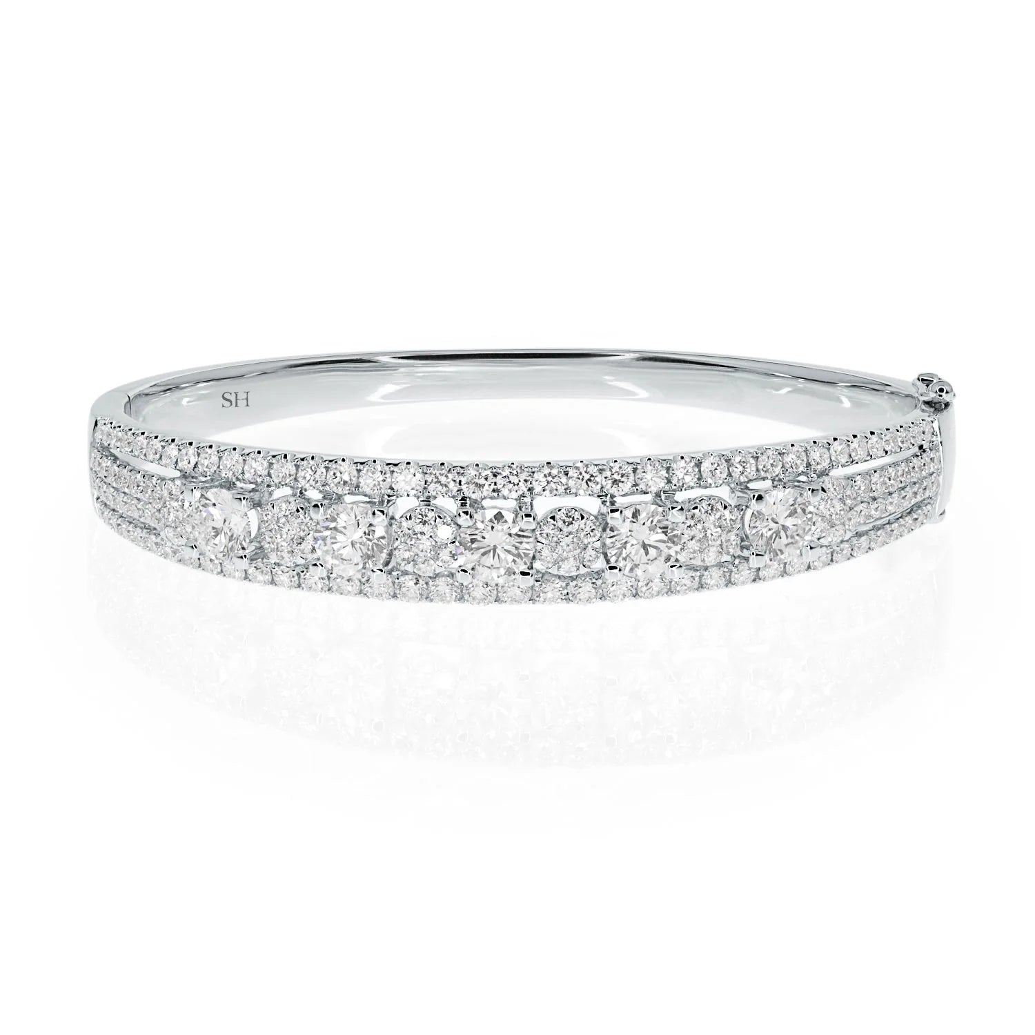 18kt White Gold Diamond Runway Bangle with 4-Split Sides - W0740