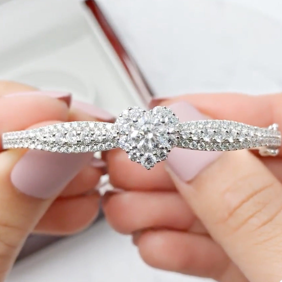 18kt Gold Halo Heart Bangle - W0744