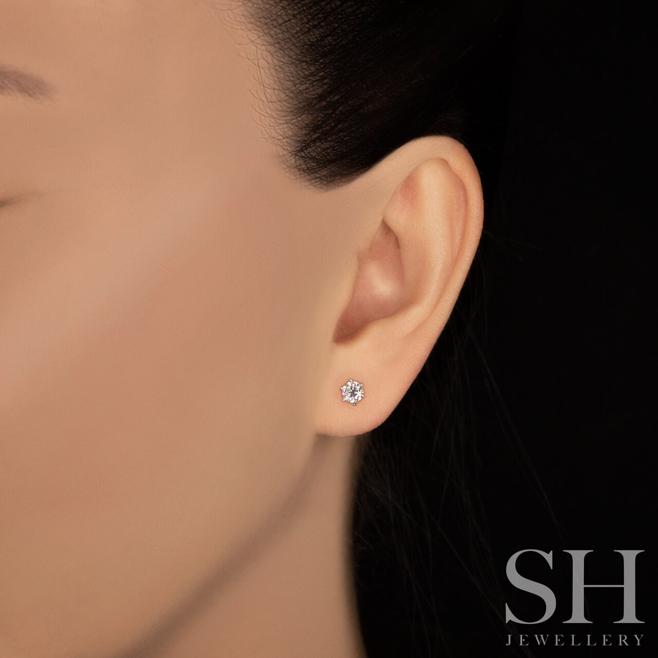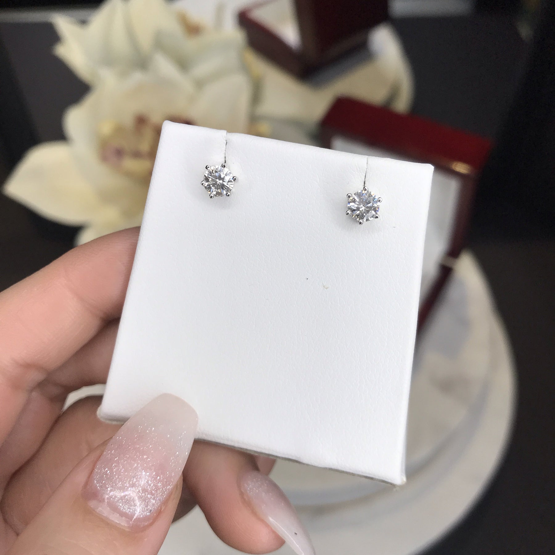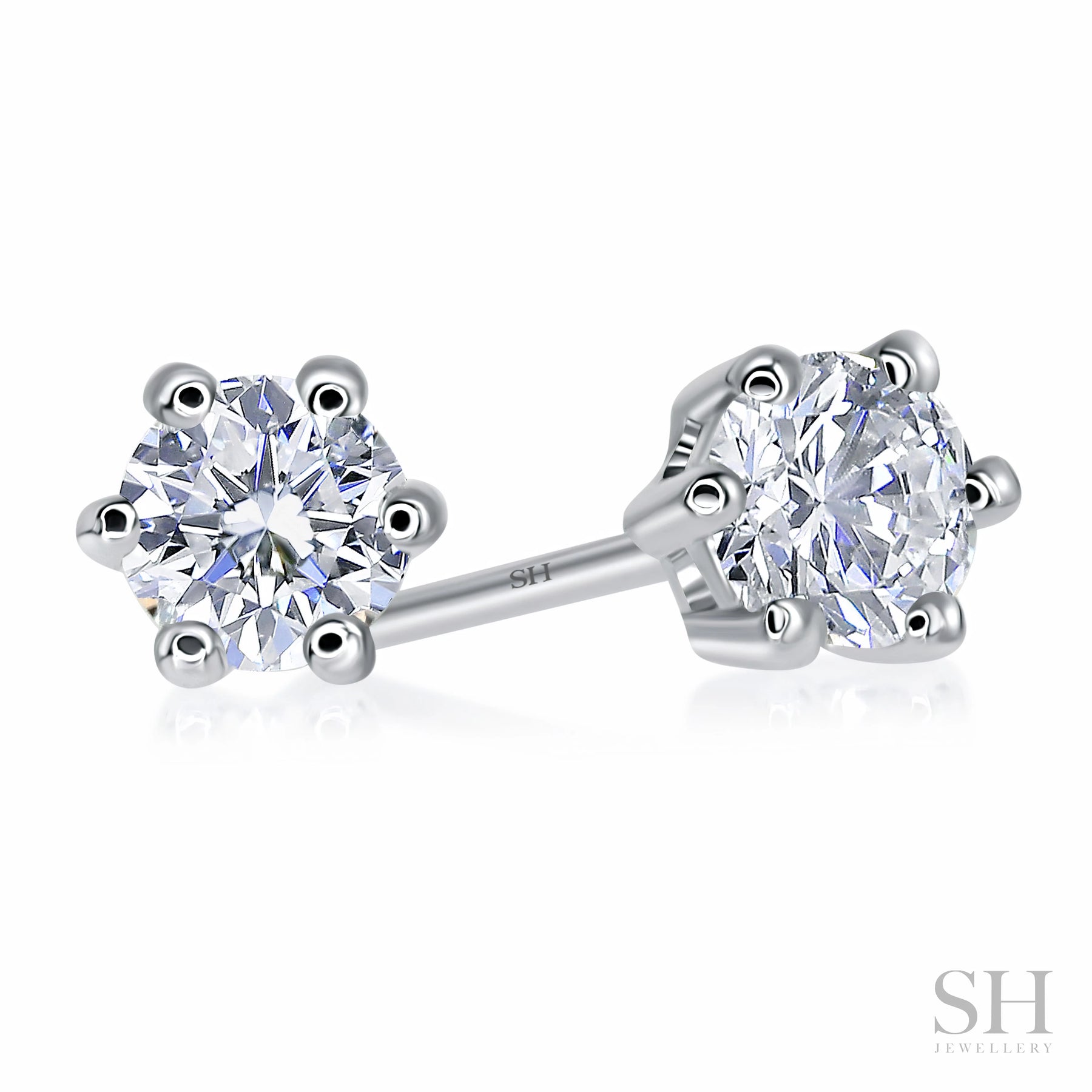 6-Claw V-Shaped Solitaire Stud Diamond Earrings - W0647