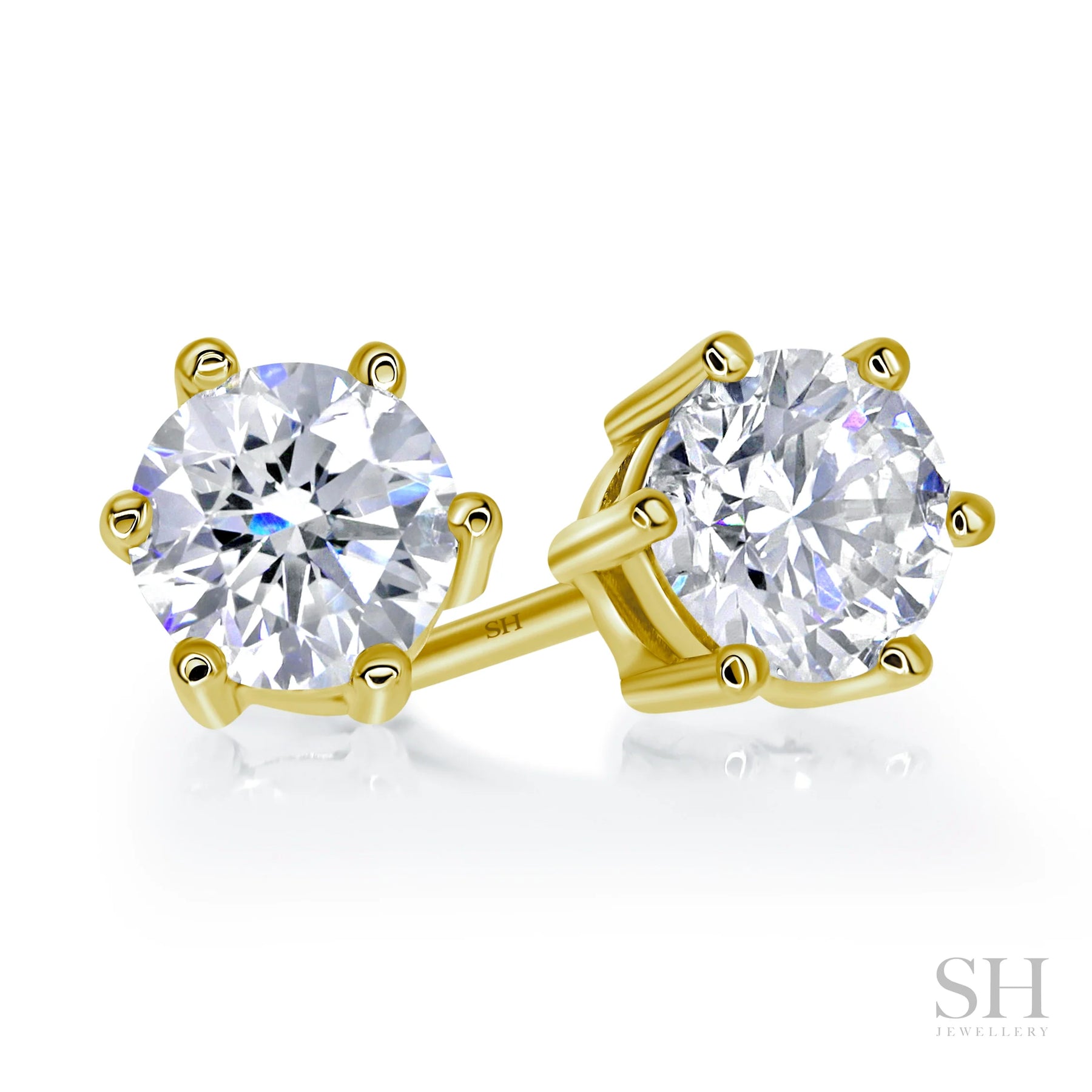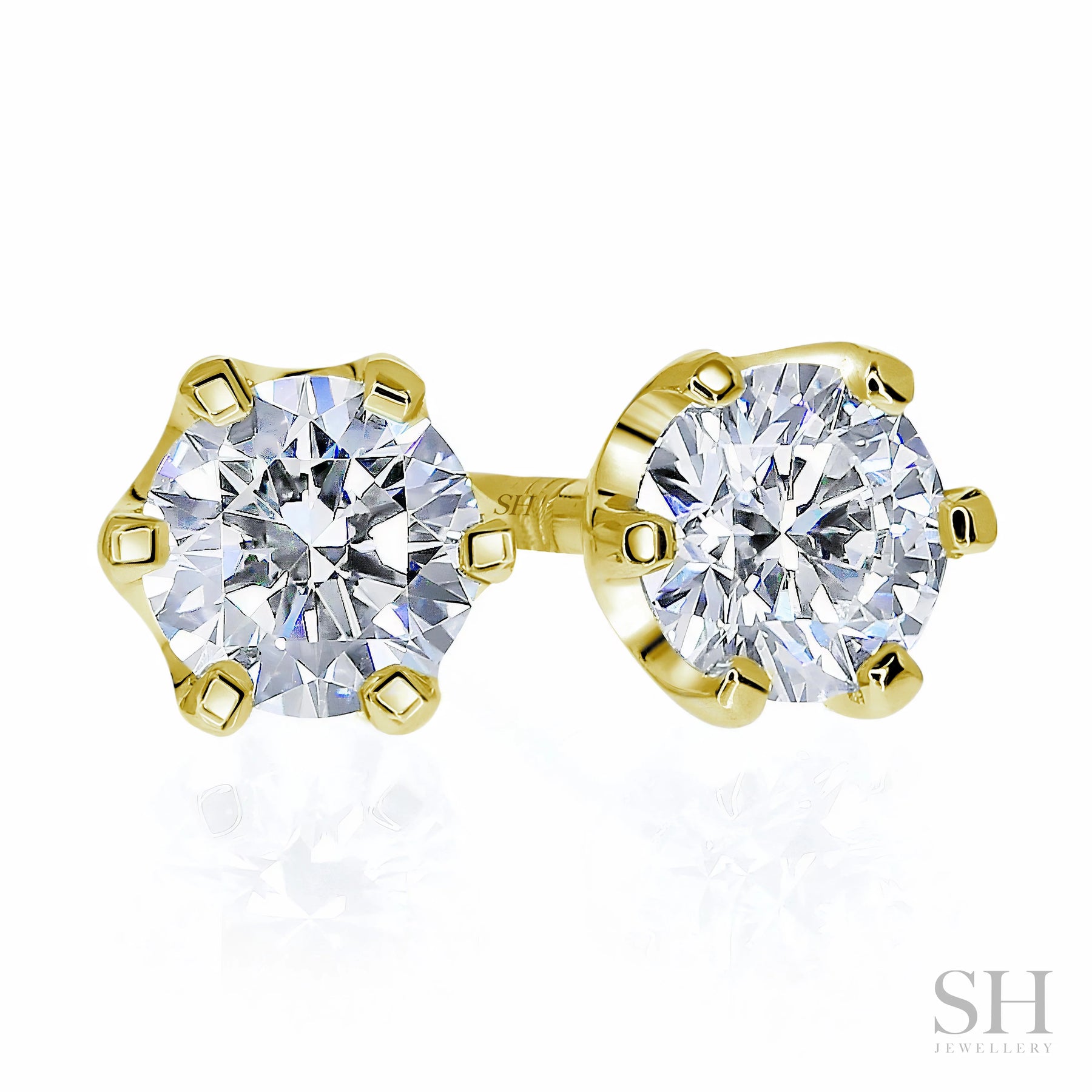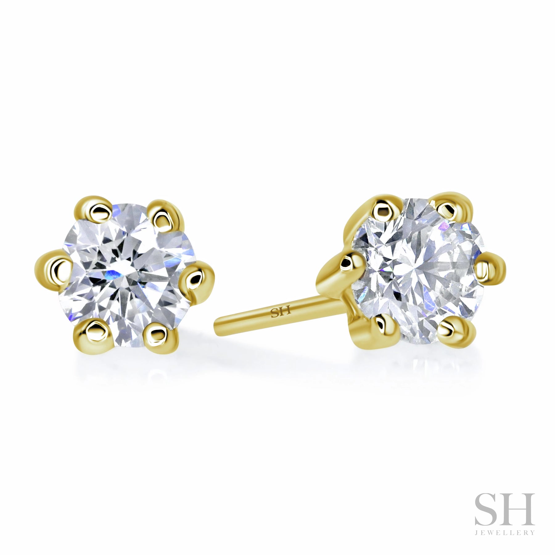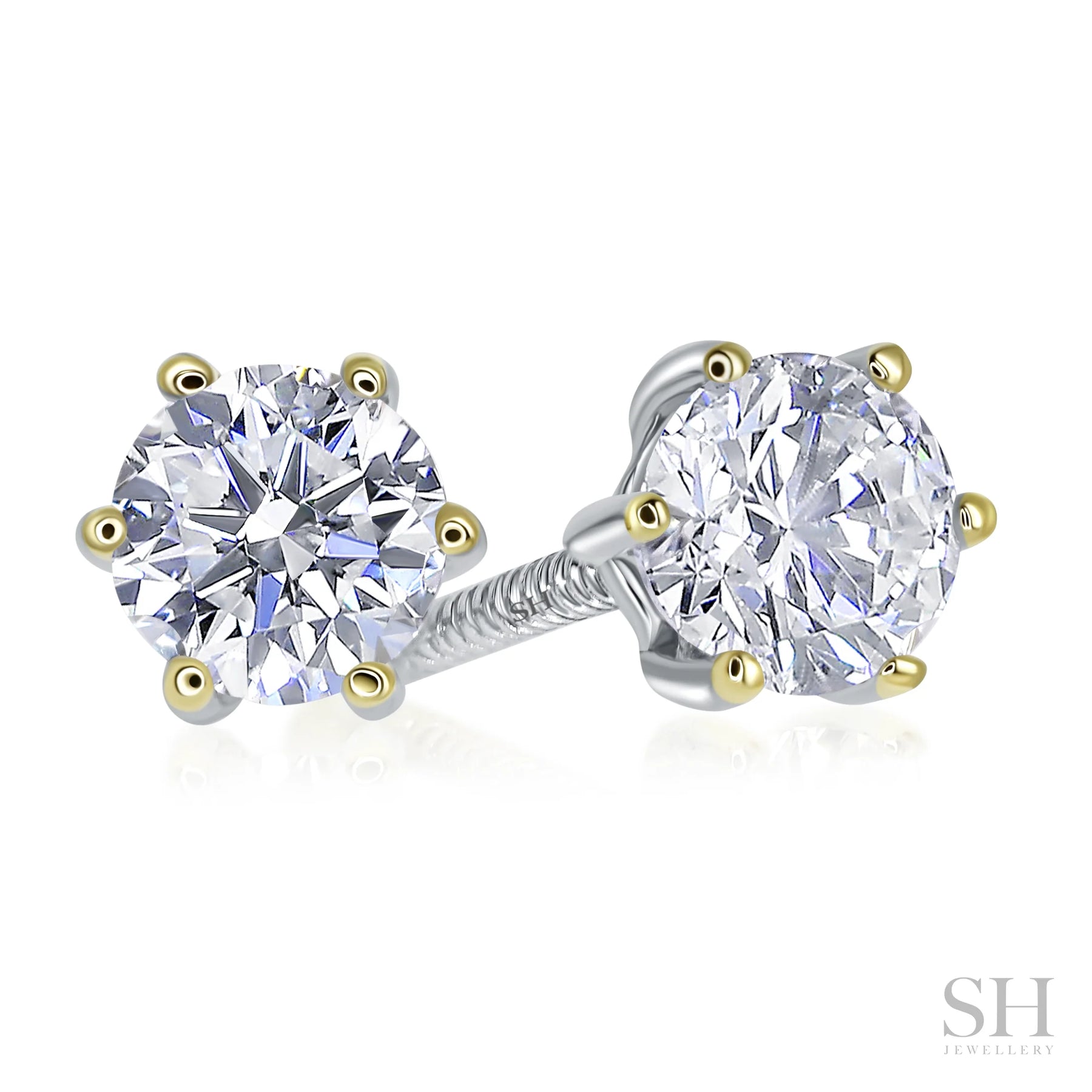 6-Claw V-Shaped Solitaire Stud Diamond Earrings - W0647