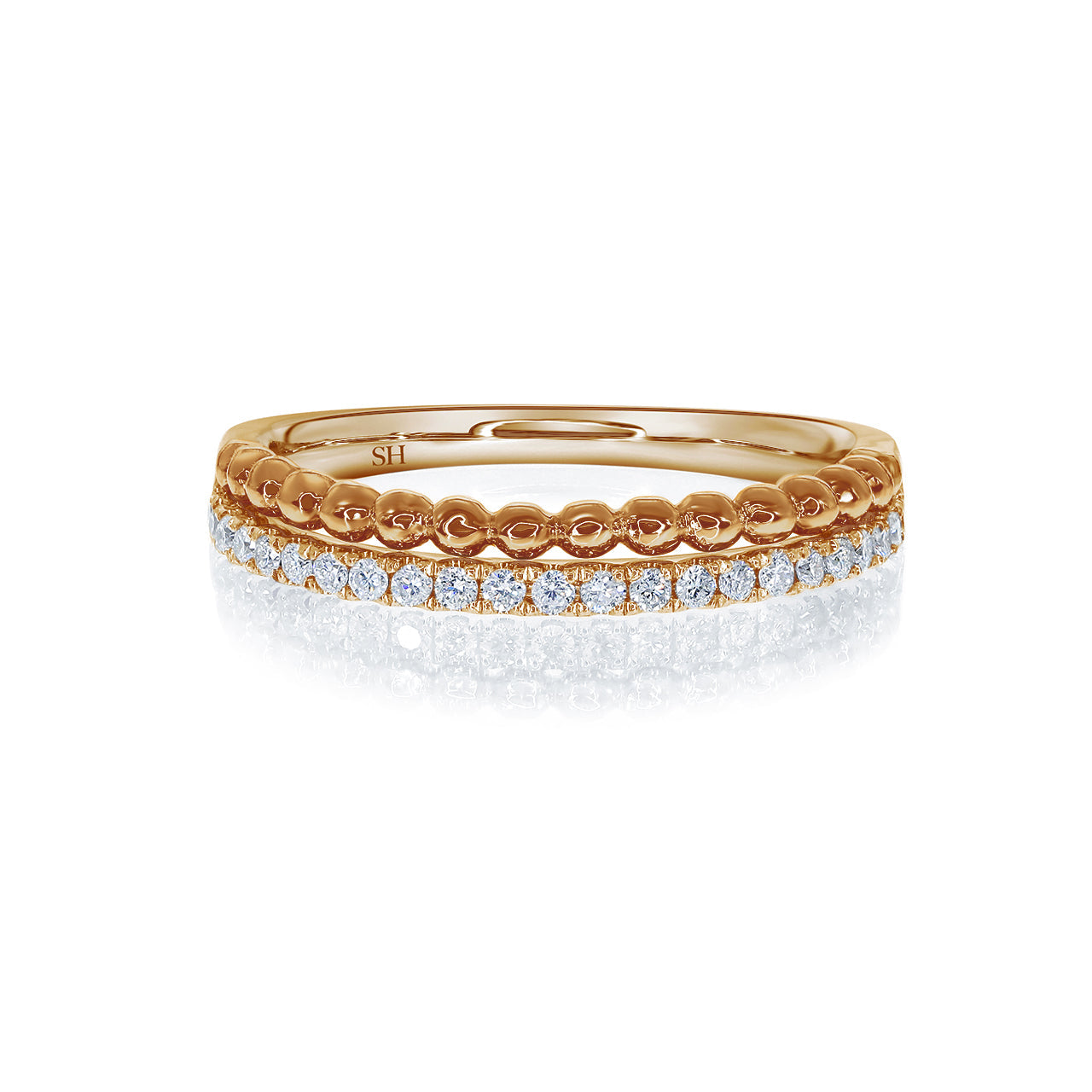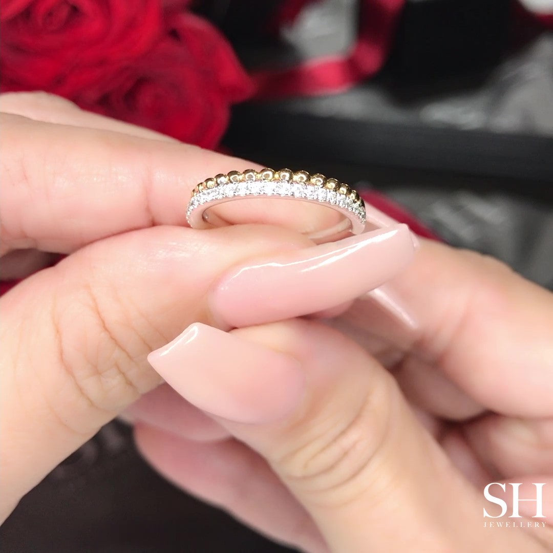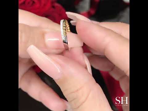 Beaded & Pavé-Set 2-Row Women’s 2-Tone Wedding Band W0823
