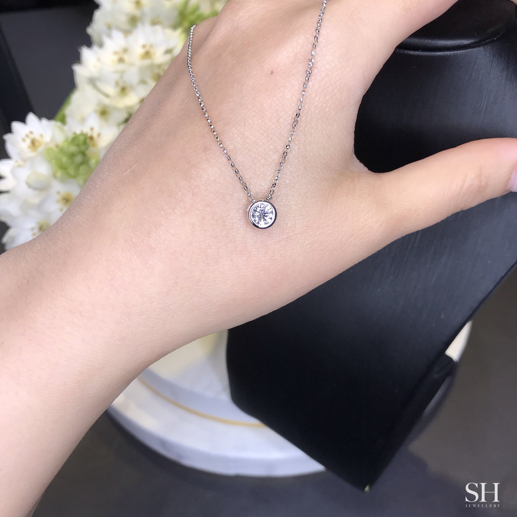 Bezel Set Solitaire Diamond Necklace (small) - W0555
