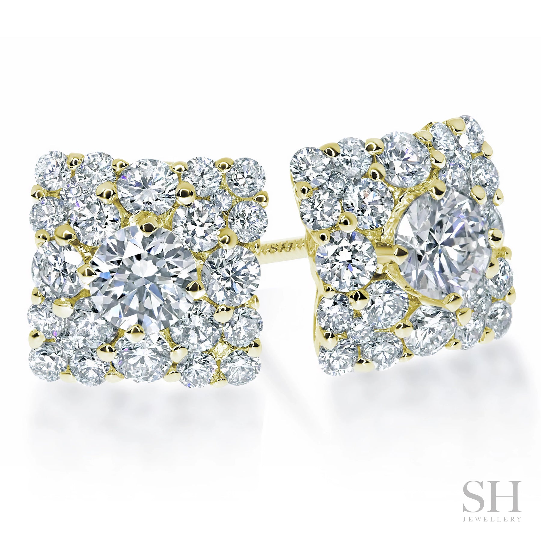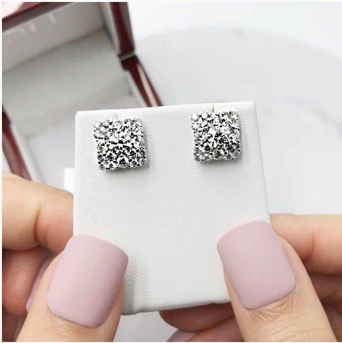 Bold and Brilliant Square Diamond Cluster Stud Earrings - W0302