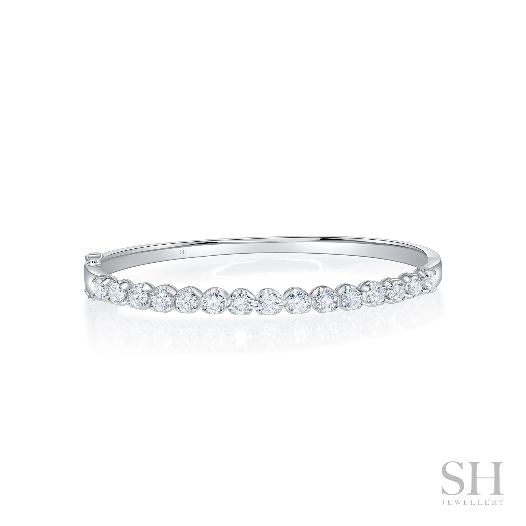 Classic 4-Claw Diamond Bangle with Gold Halo Trim (2.5ct TW) - W1195