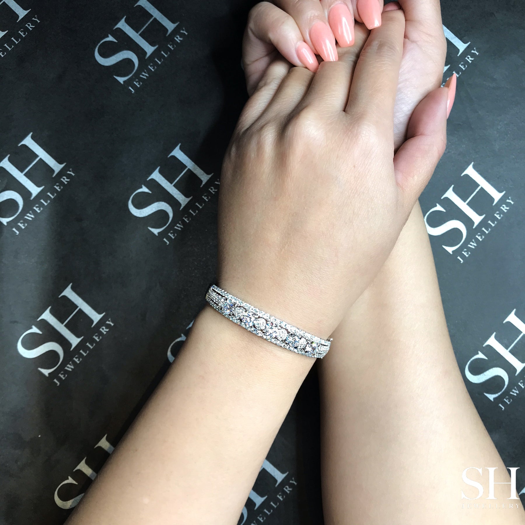 Diamond Runway Bangle Four Row Divided Sides - W0929