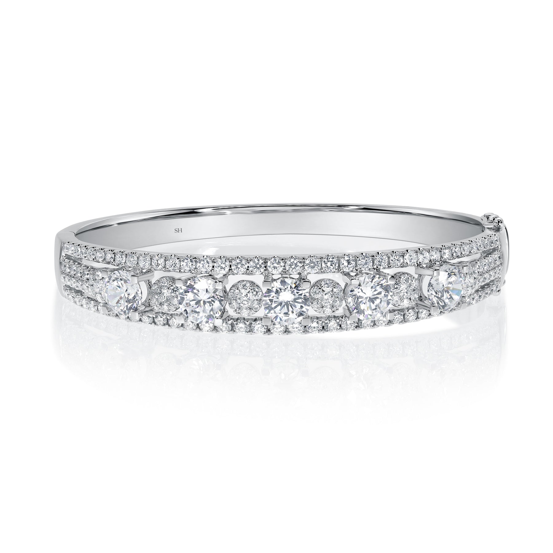 Diamond Runway Bangle with Four Row Divided Sides - W0930