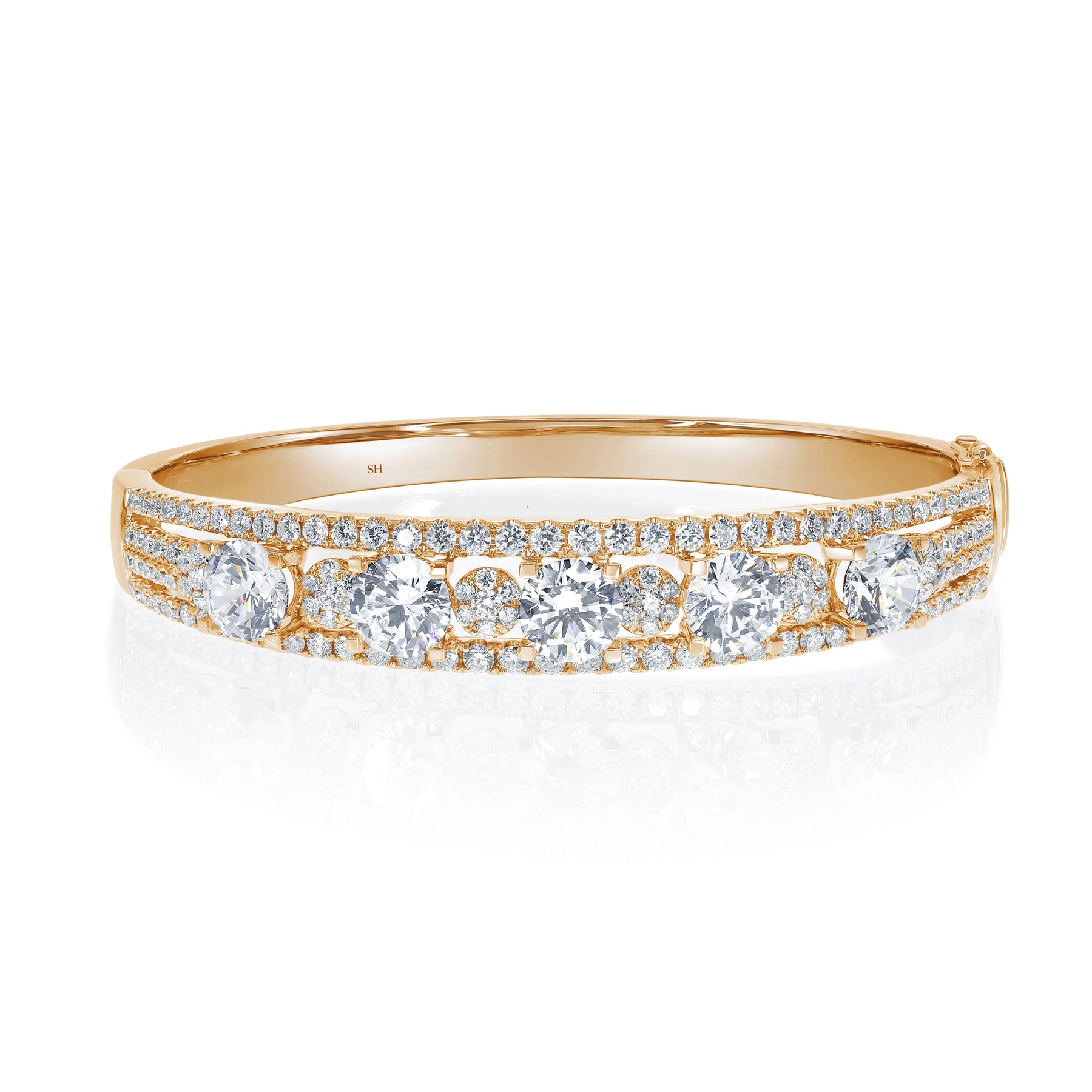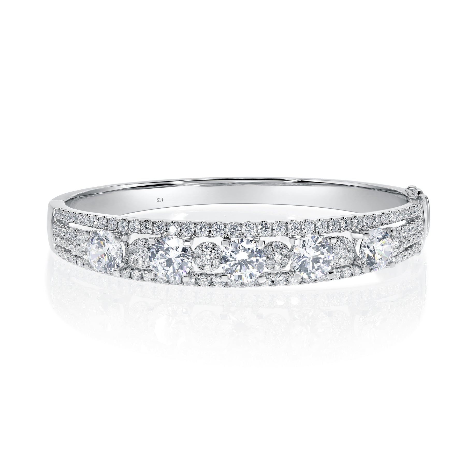 Diamond Runway Bangle with Four Row Divided Sides - W0931