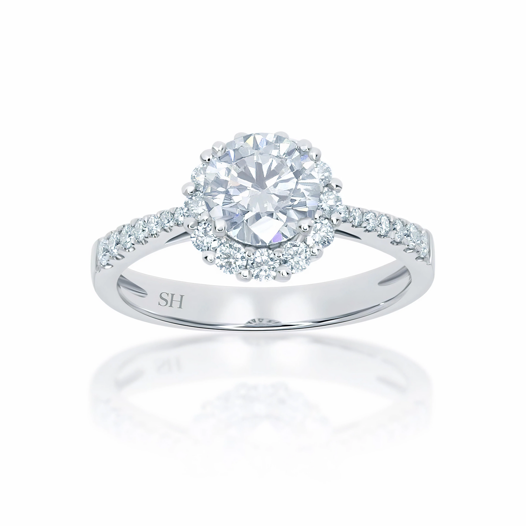 Floral halo style engagement ring with tapered band - W0046