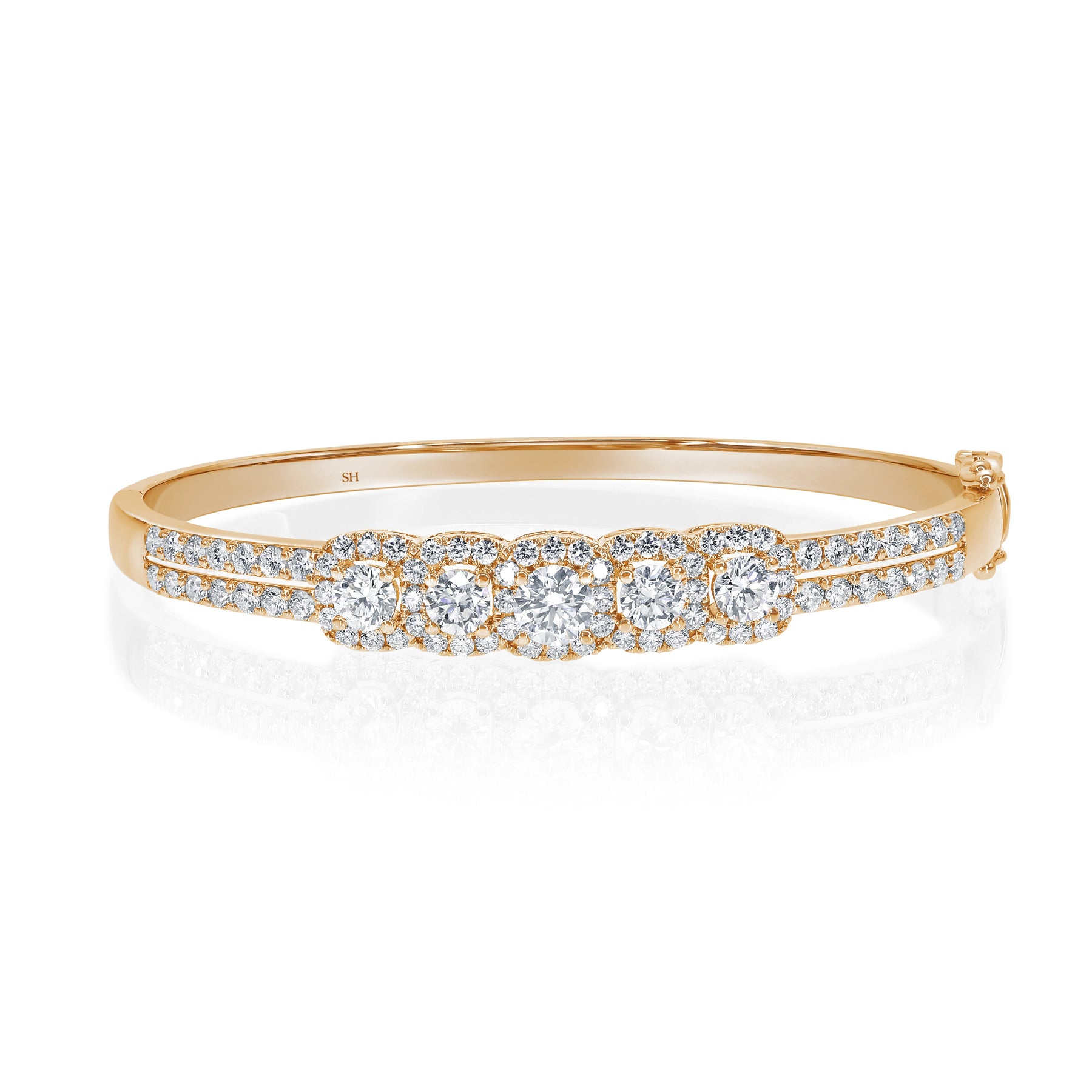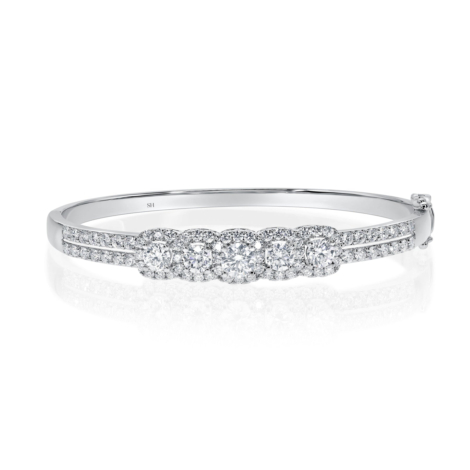 Floriade Five Round Diamonds Split Two Row Bangle 5mm - W0942