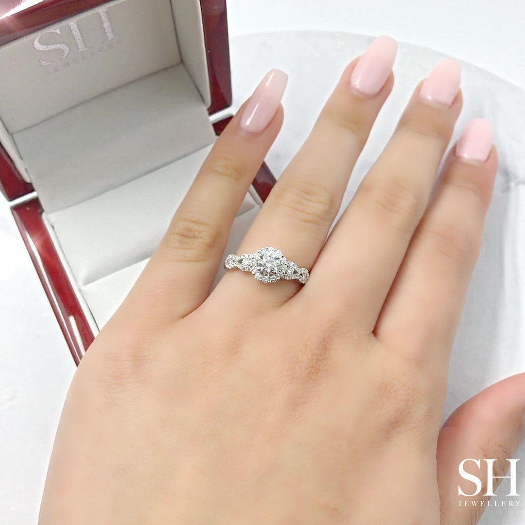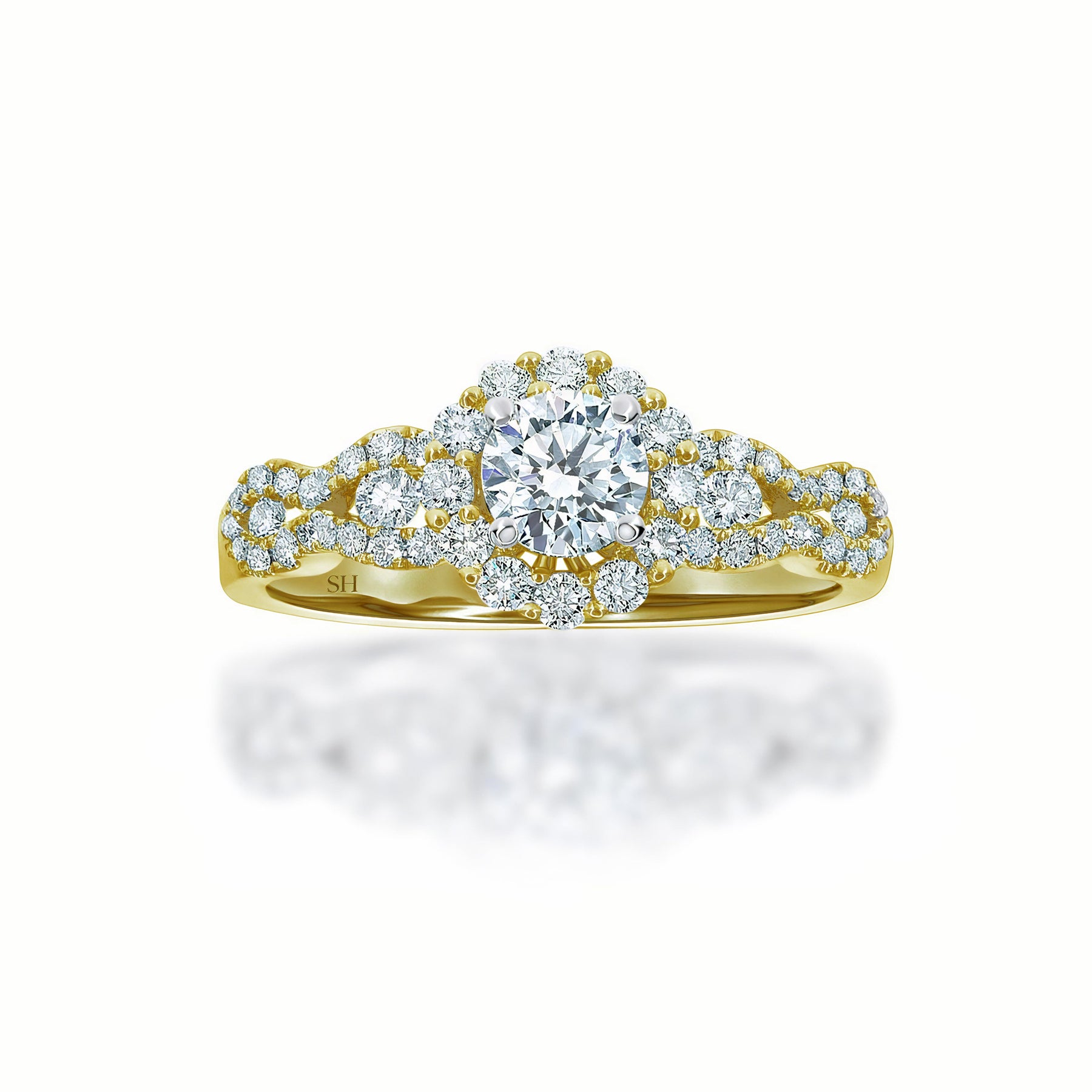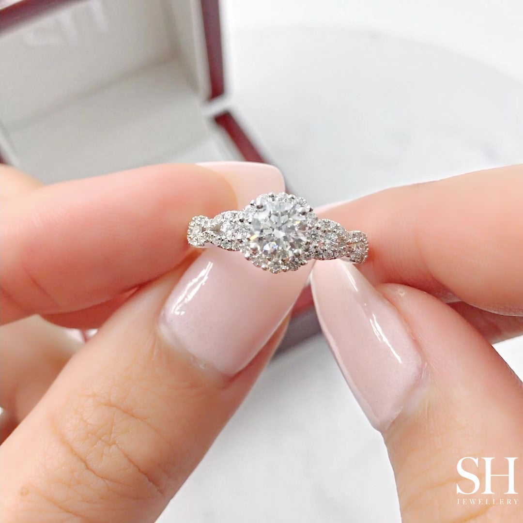 Halo Engagement Ring with Wavy Band - W0321