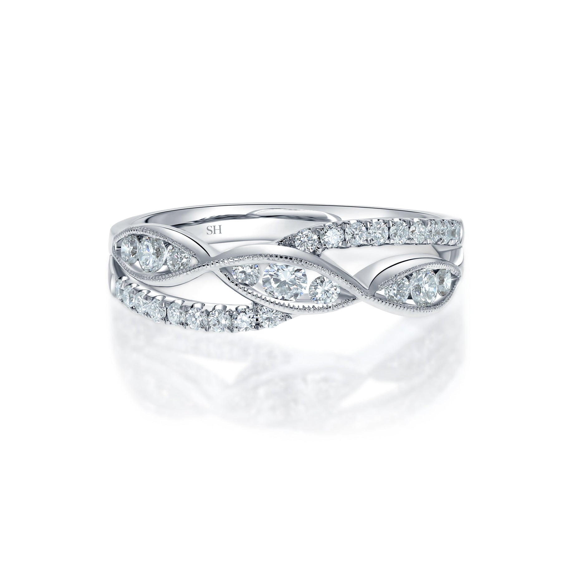 Intertwined Milgrain Finished Marquise Panels with Pavé-Set Twirl - W0837