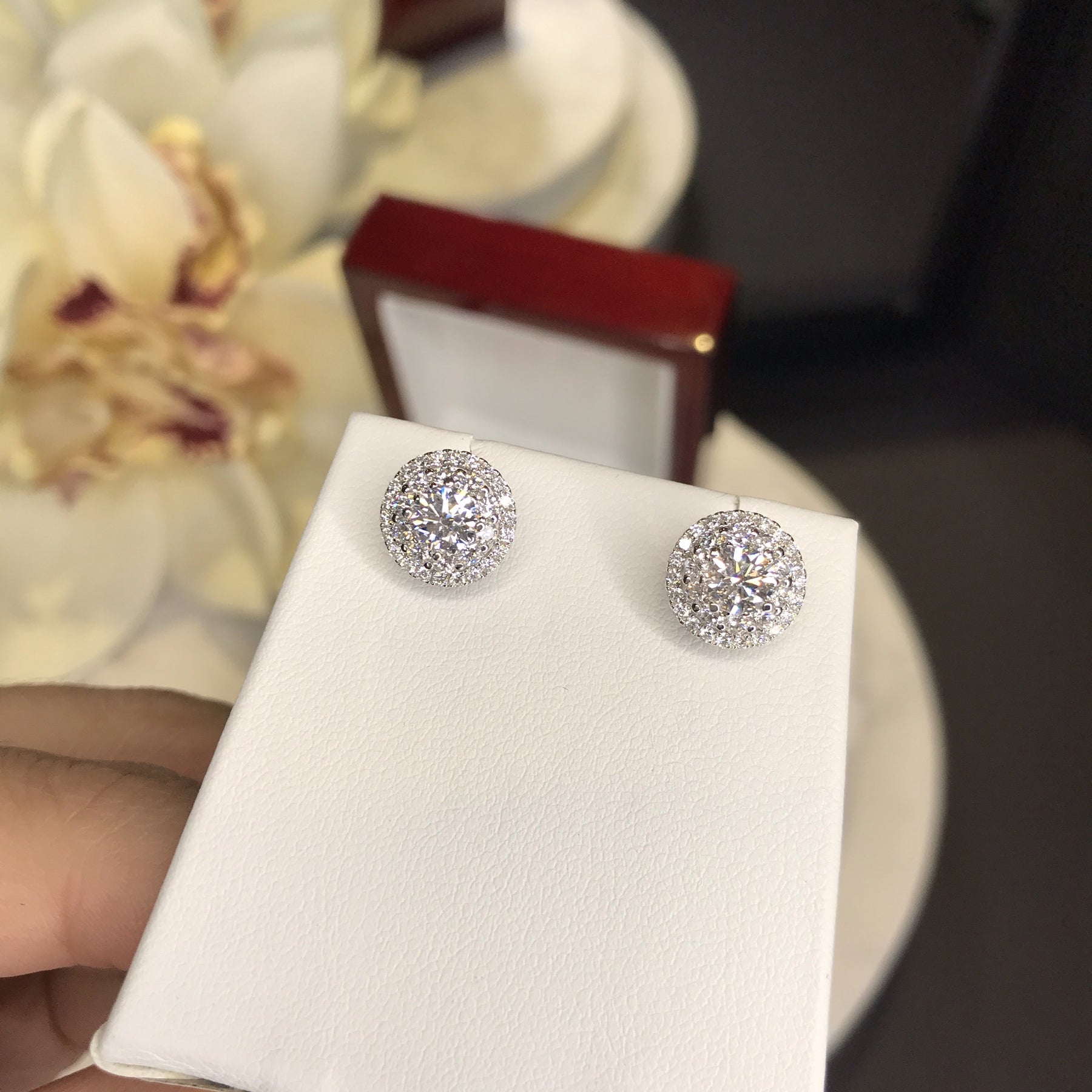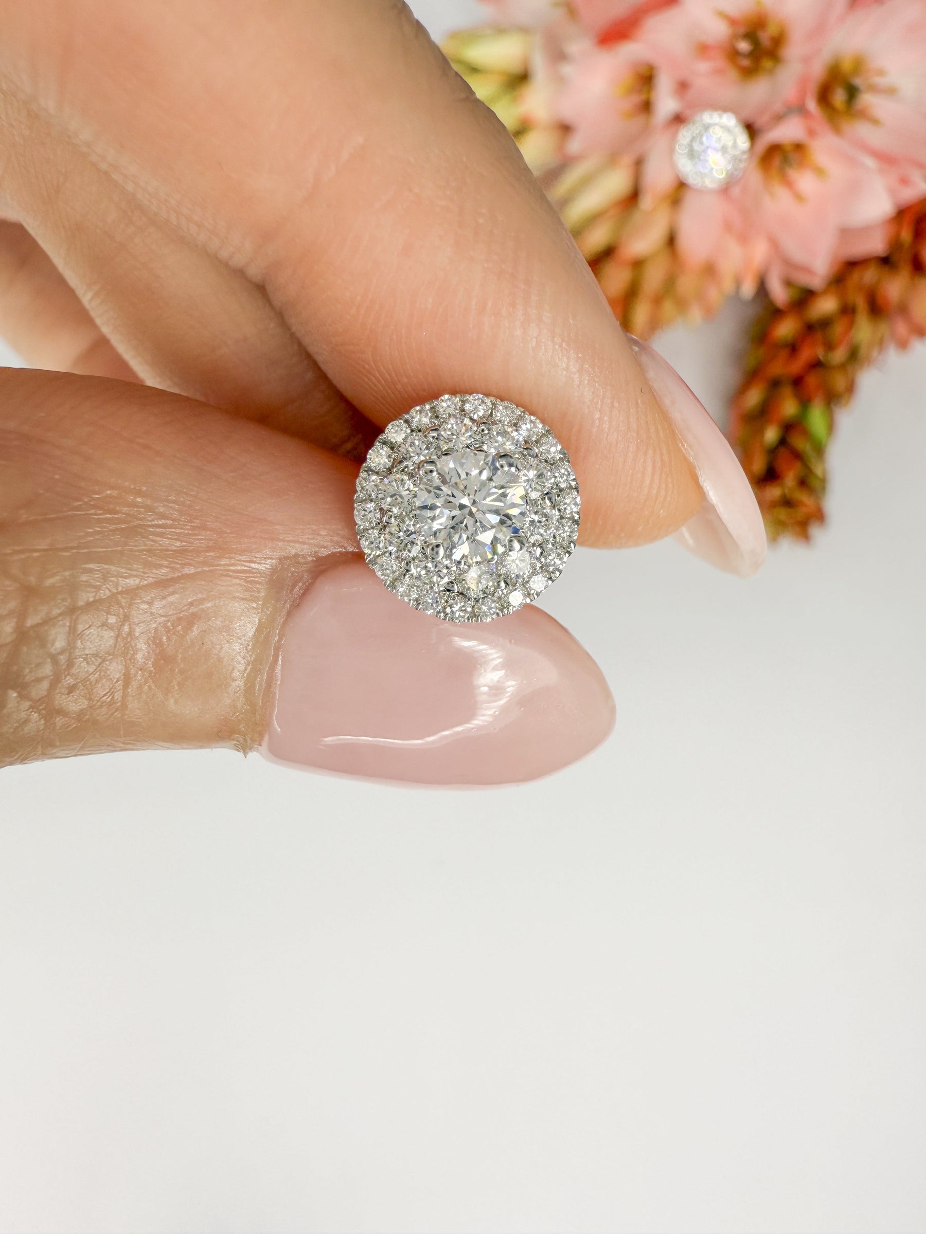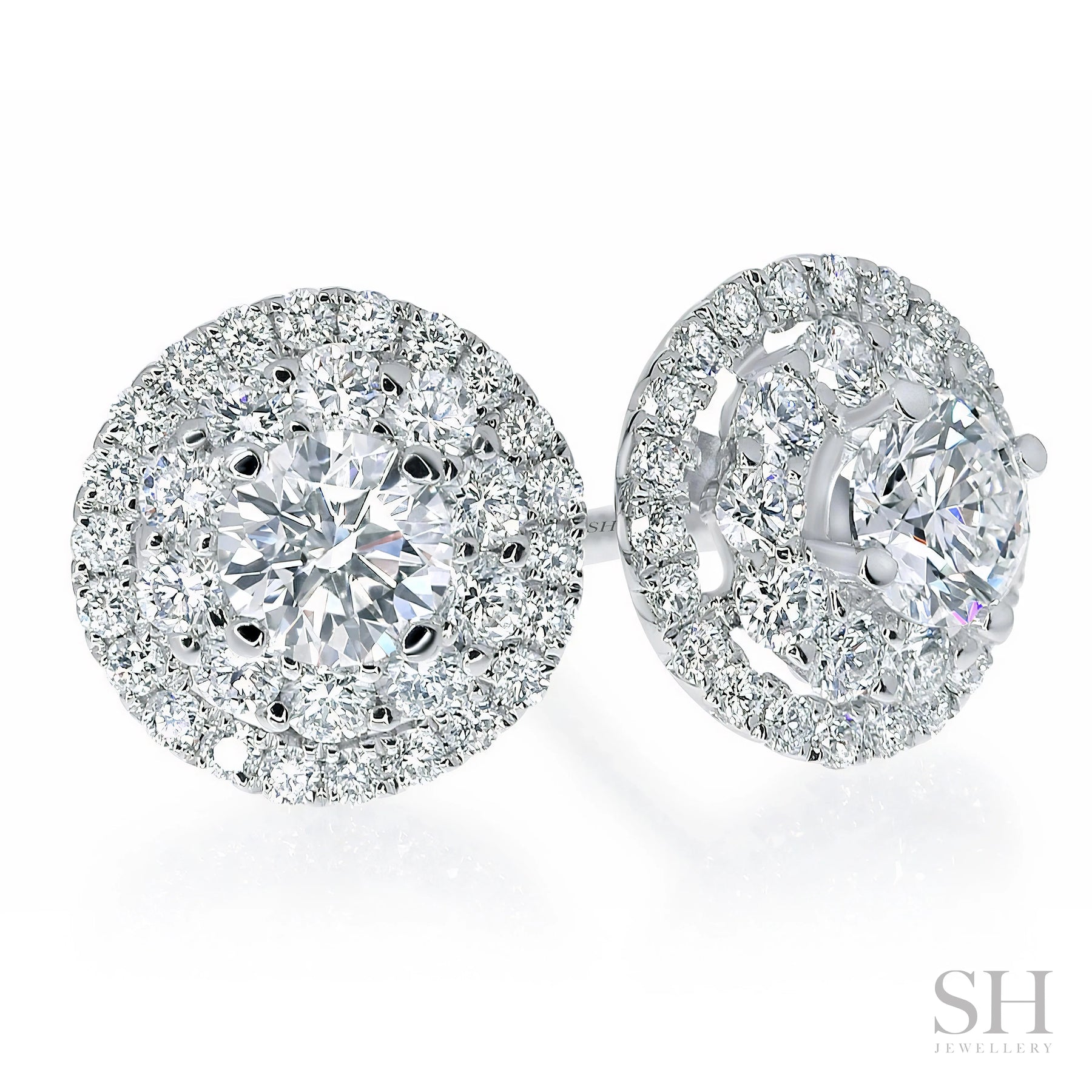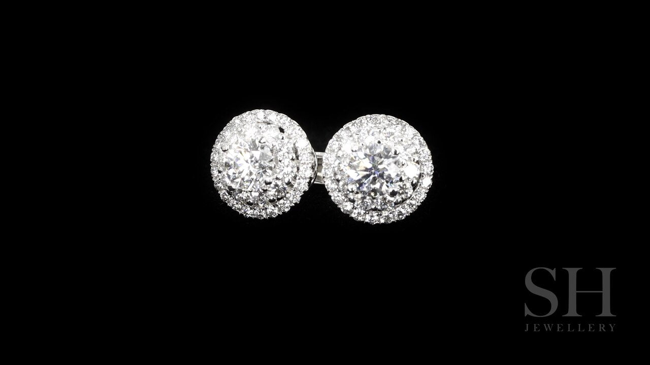 Layered Circular Double Halo Diamond Earrings (0.30ct centre) - W0284