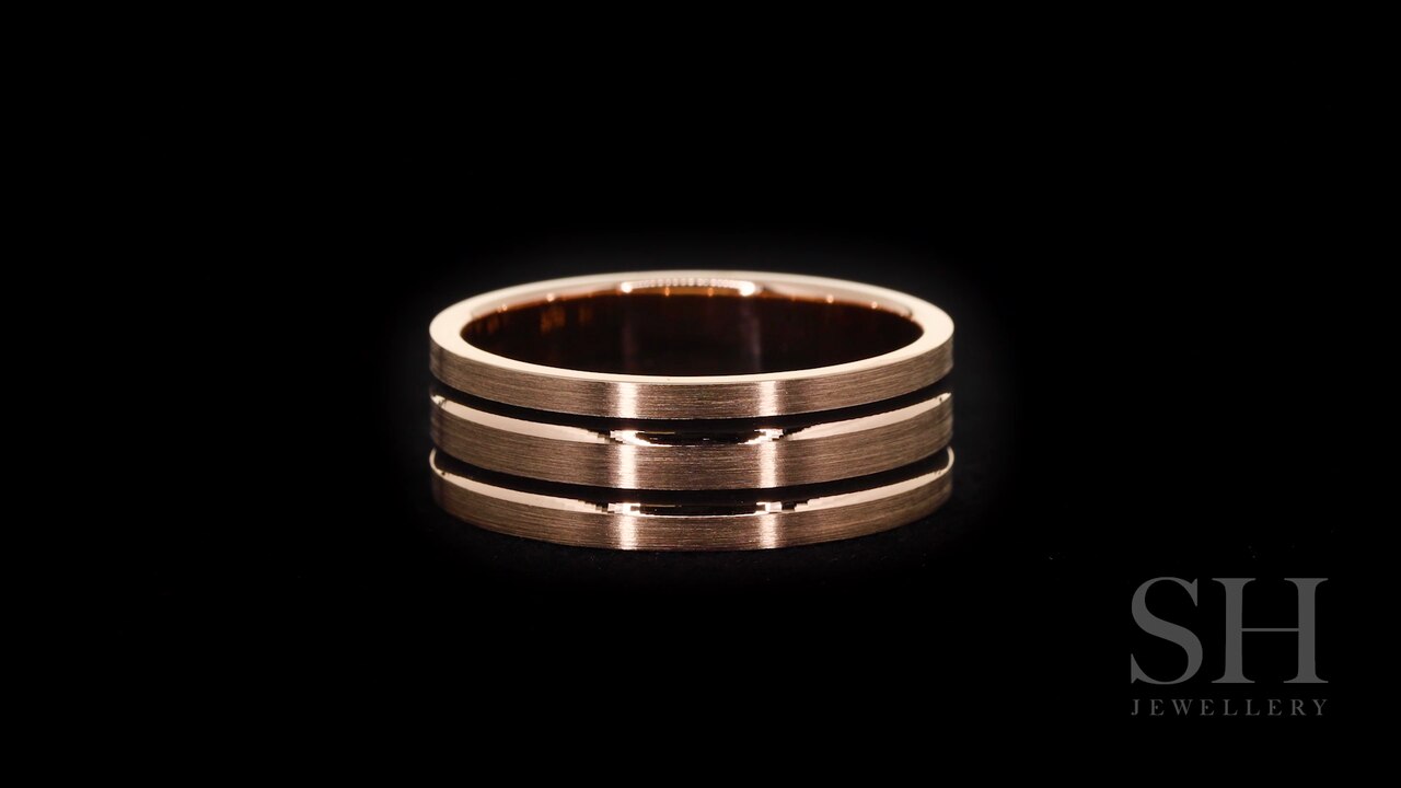 Men's Rose Gold Square Profile Wider Band With Twin Grooves (7mm) - W0513