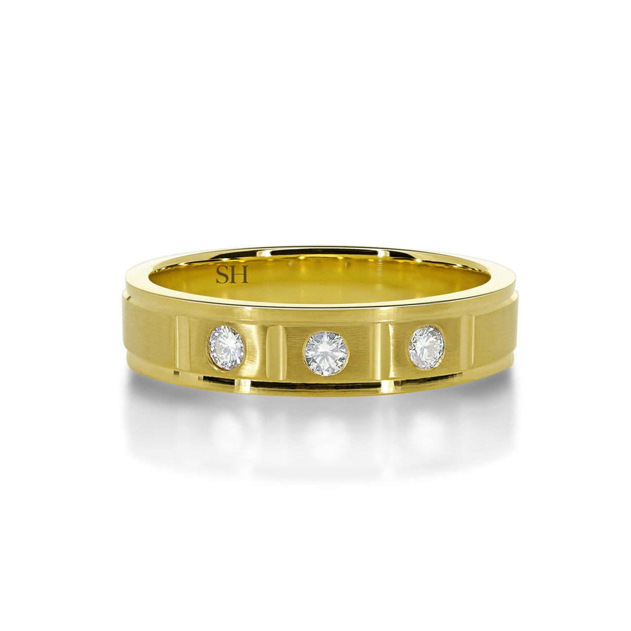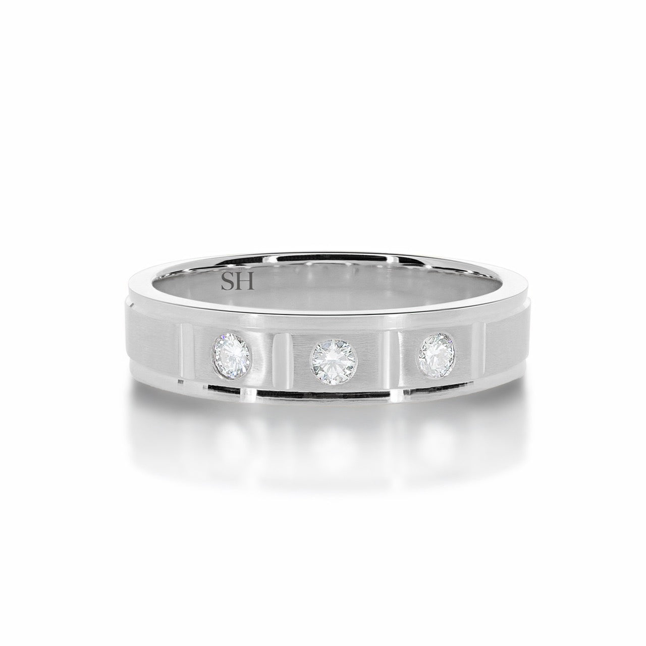 Men's satin finish three stone diamond wedding band (5.5mm) - W0093