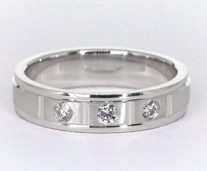 Men's satin finish three stone diamond wedding band (5.5mm) (WG) - W0094