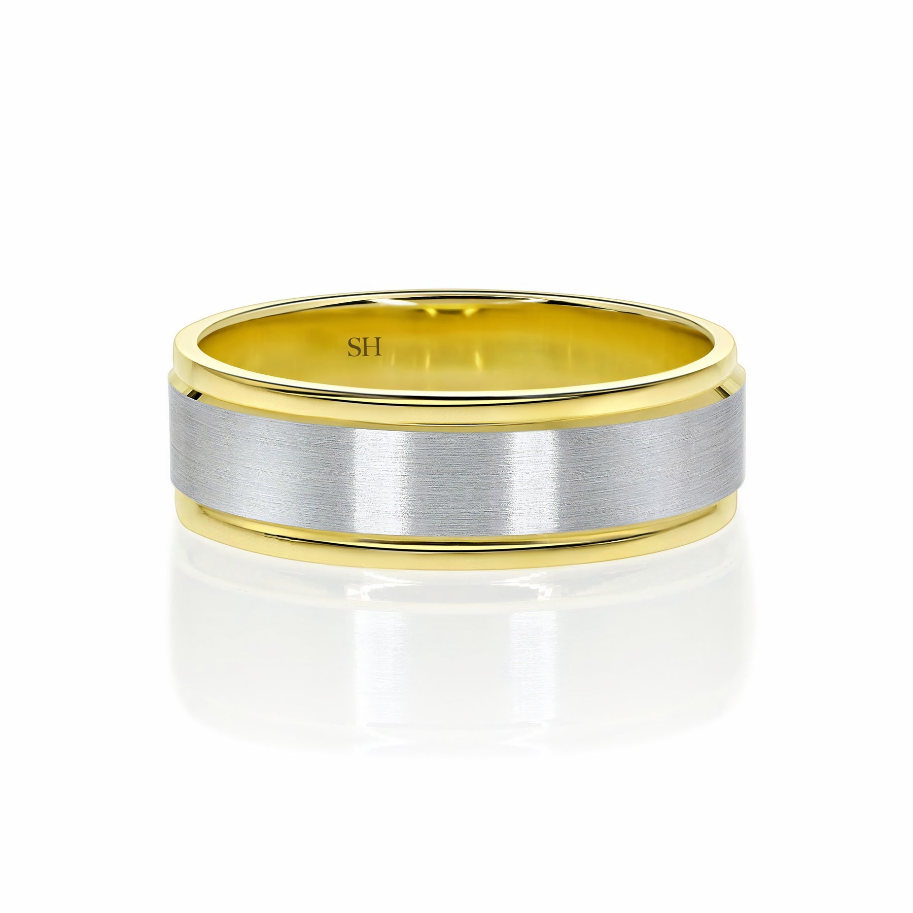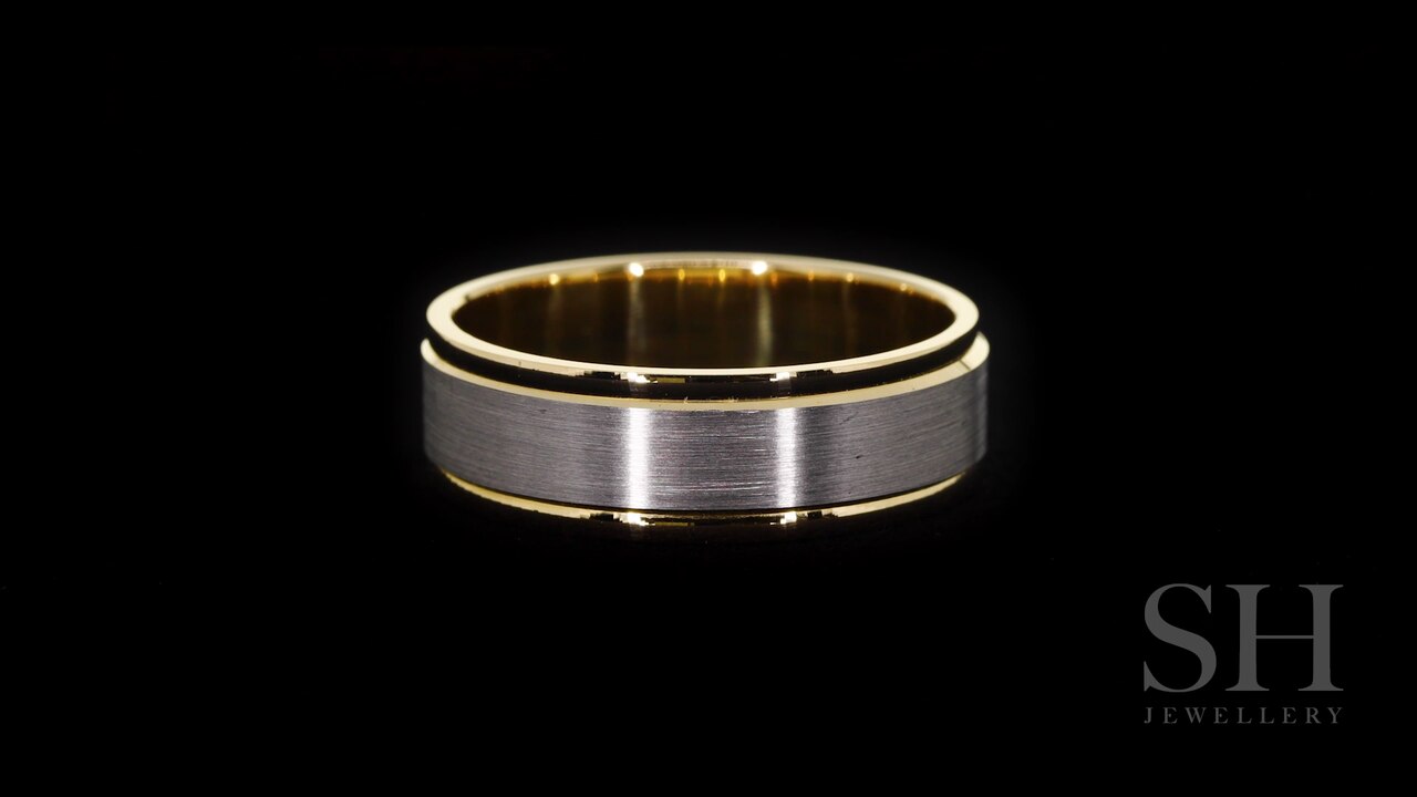 Men's Two-Tone Wedding Band With Central Satin Finish (7mm) - W0509