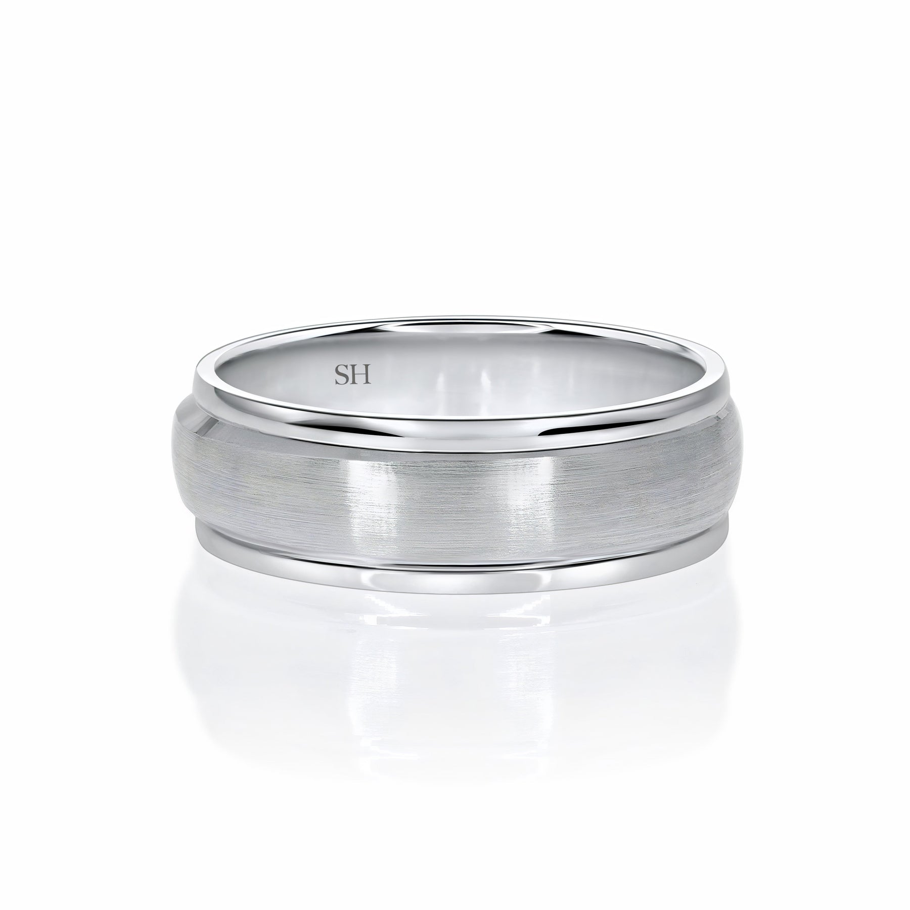 Men's White Gold Satin Finish Wedding Band With Half Round Profile (7mm) - W0500