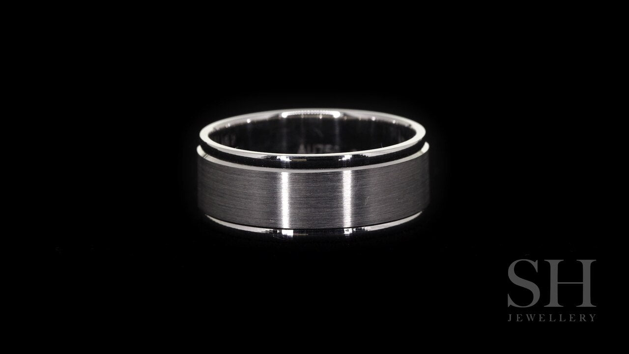 Men’s Wider White Gold Wedding Band With Central Satin Finish (8mm) - W0498