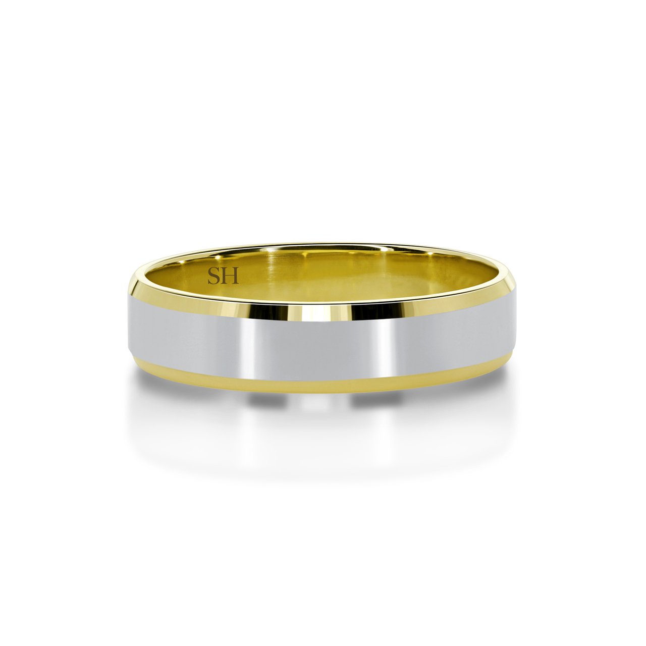 Men's yellow and white gold polished finish wedding band with bevelled edges (5mm) - W0141
