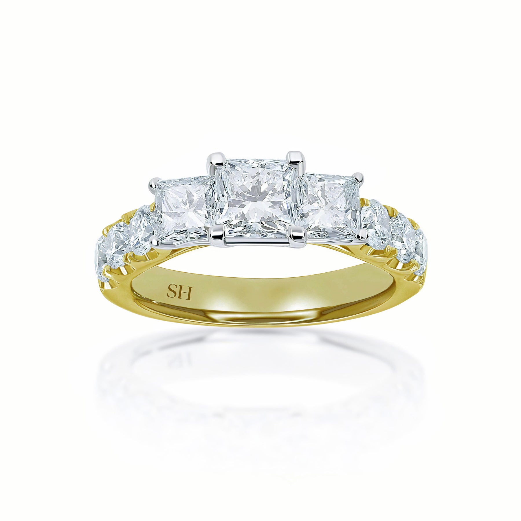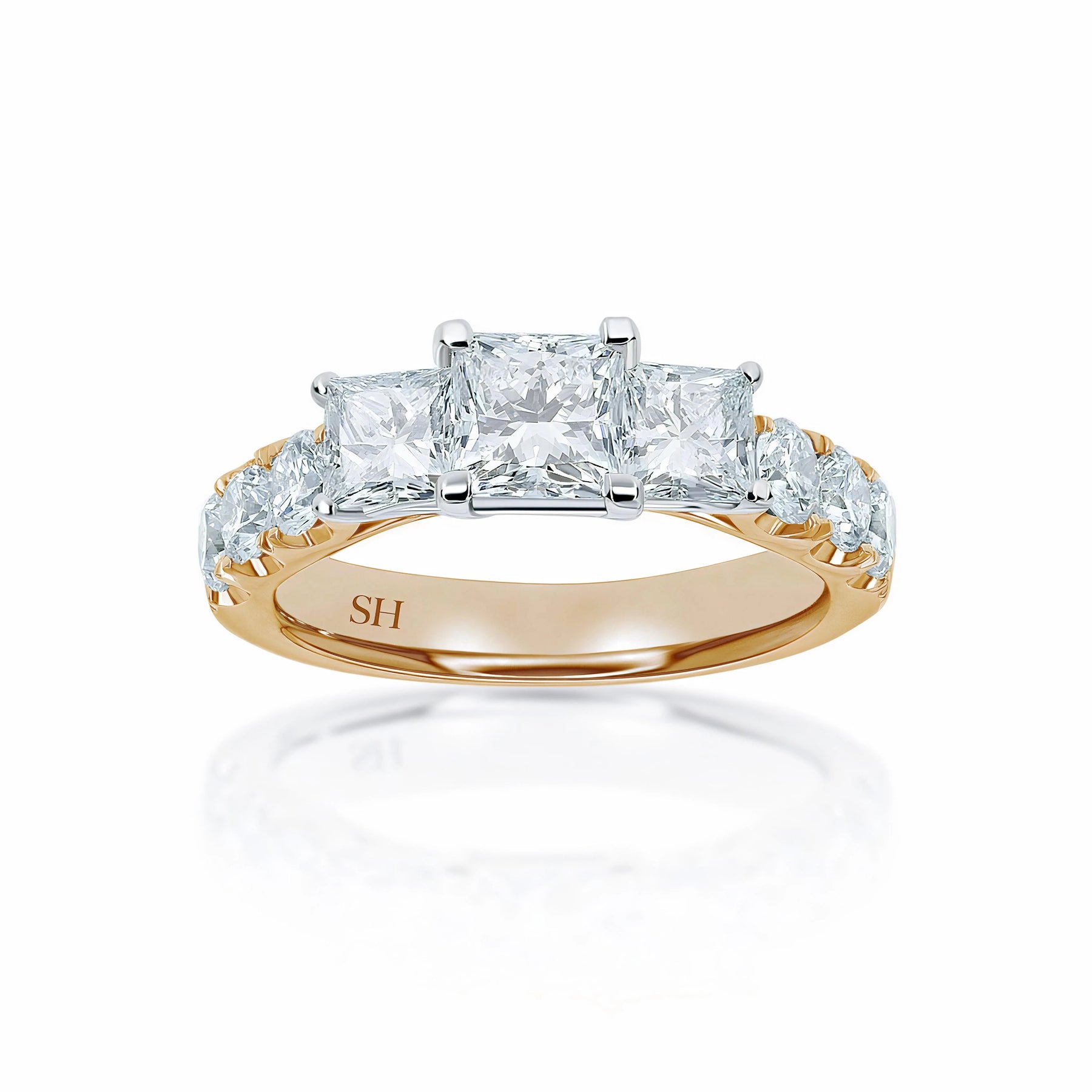 Modern Princess Cut trilogy ring with claw set band - W0033