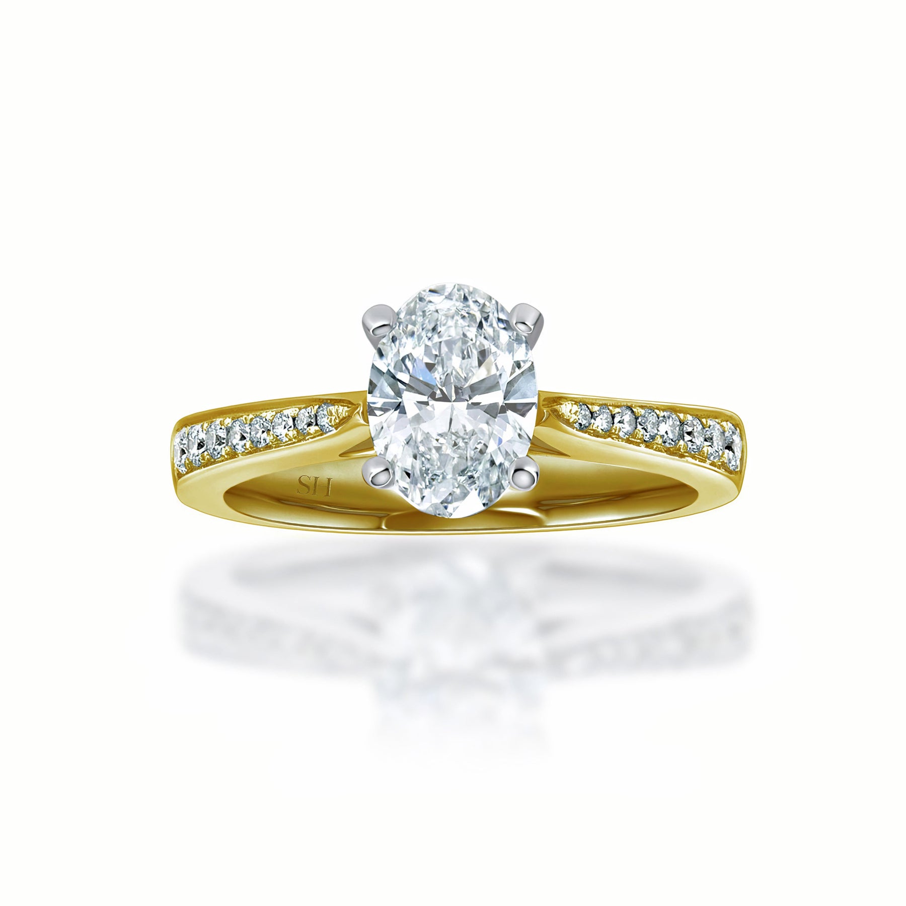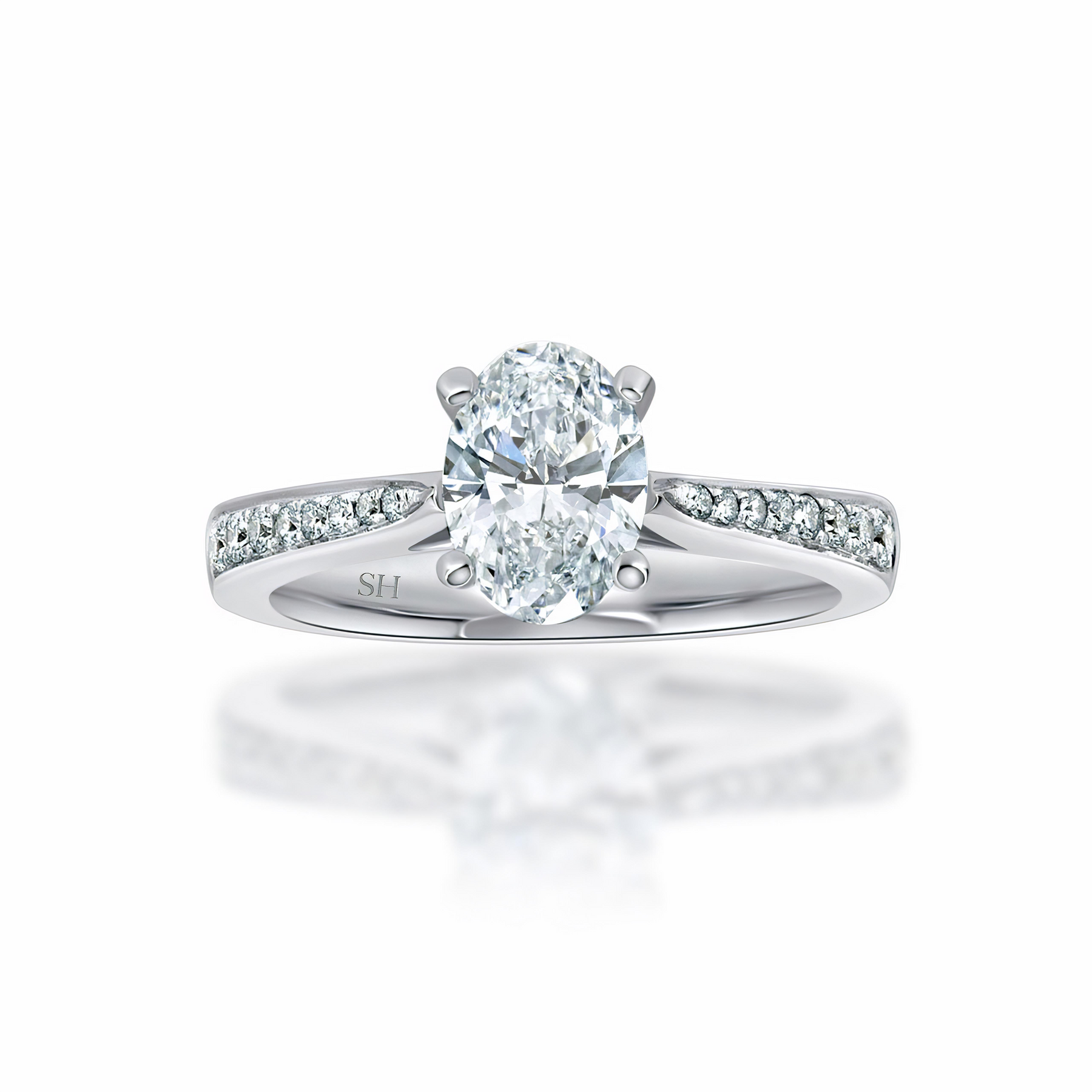 Oval Brilliant Cut diamond ring with tapered band - W0324