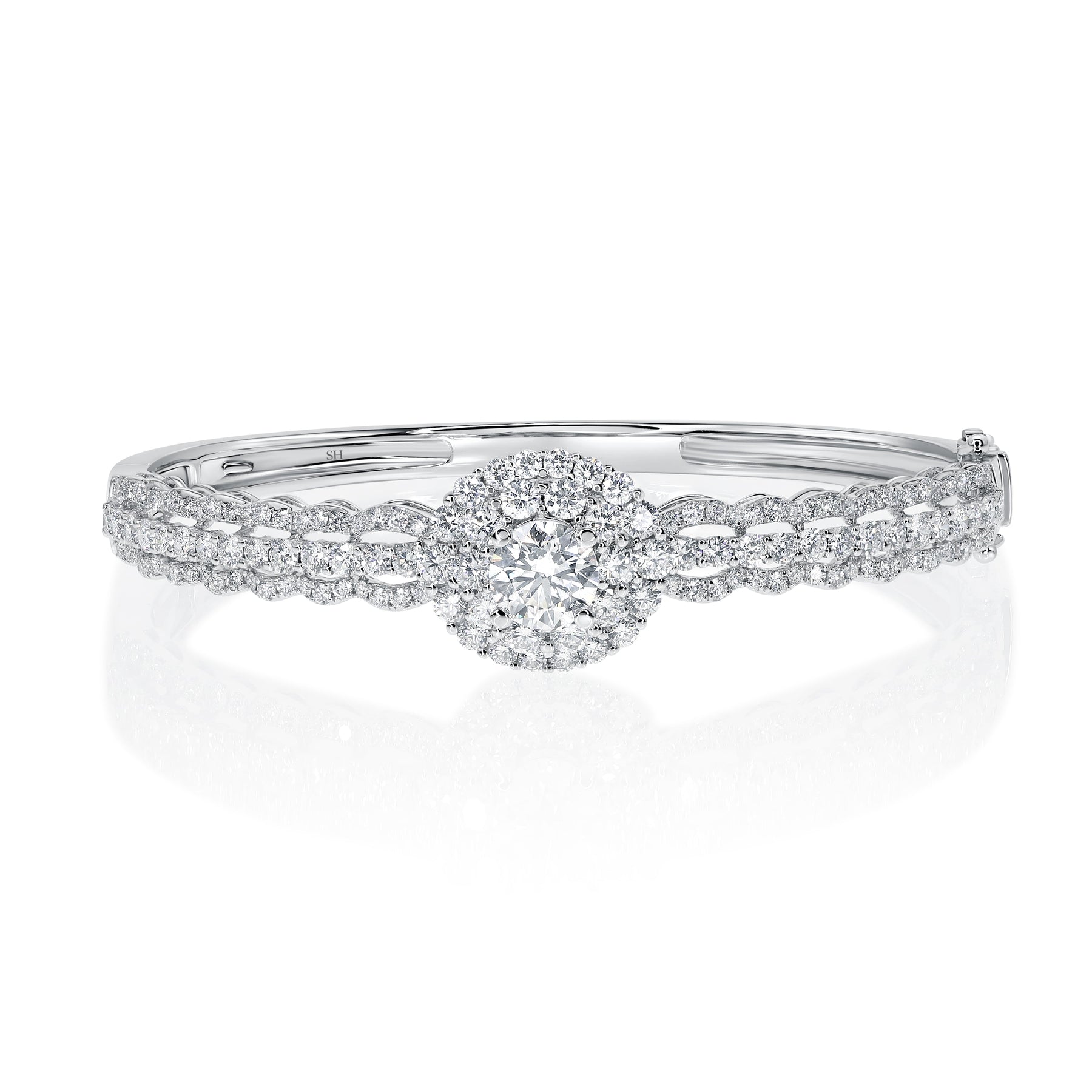 Double Halo Centred in Ripple Edged Three Row Bangle 8.0mm - W0920