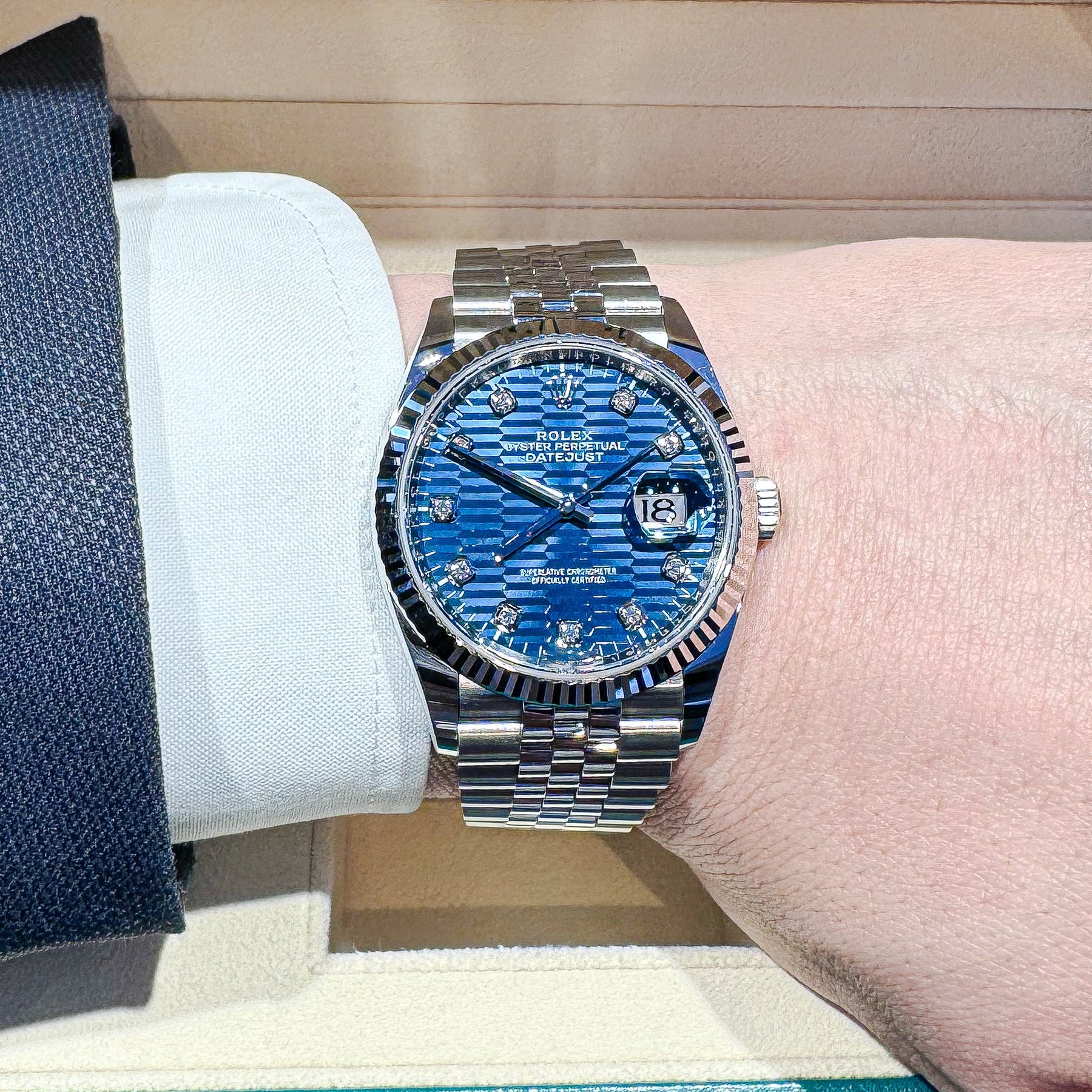 Rolex Datejust36 36mm Steel/WG Blue Motif Dial Diamond Markers 2023 Ref m126234-0057 (#445)