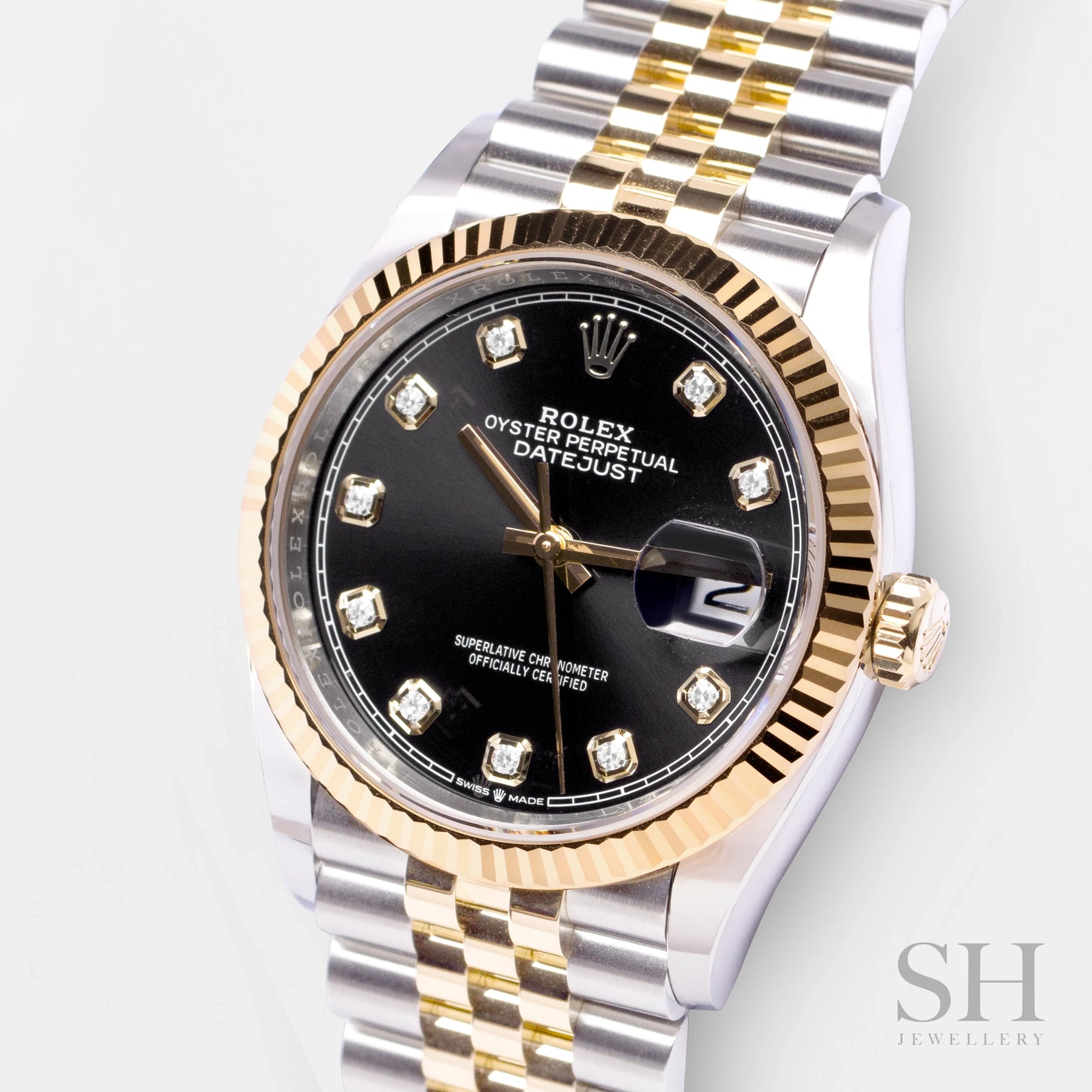 Rolex Datejust36 36mm Steel/YG Black Dial Diamond Markers 2024 Ref m126233-0021 (#832)