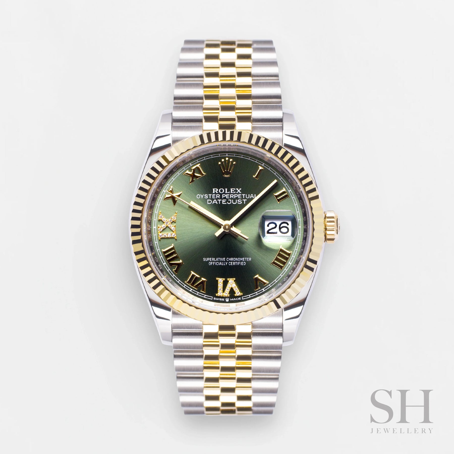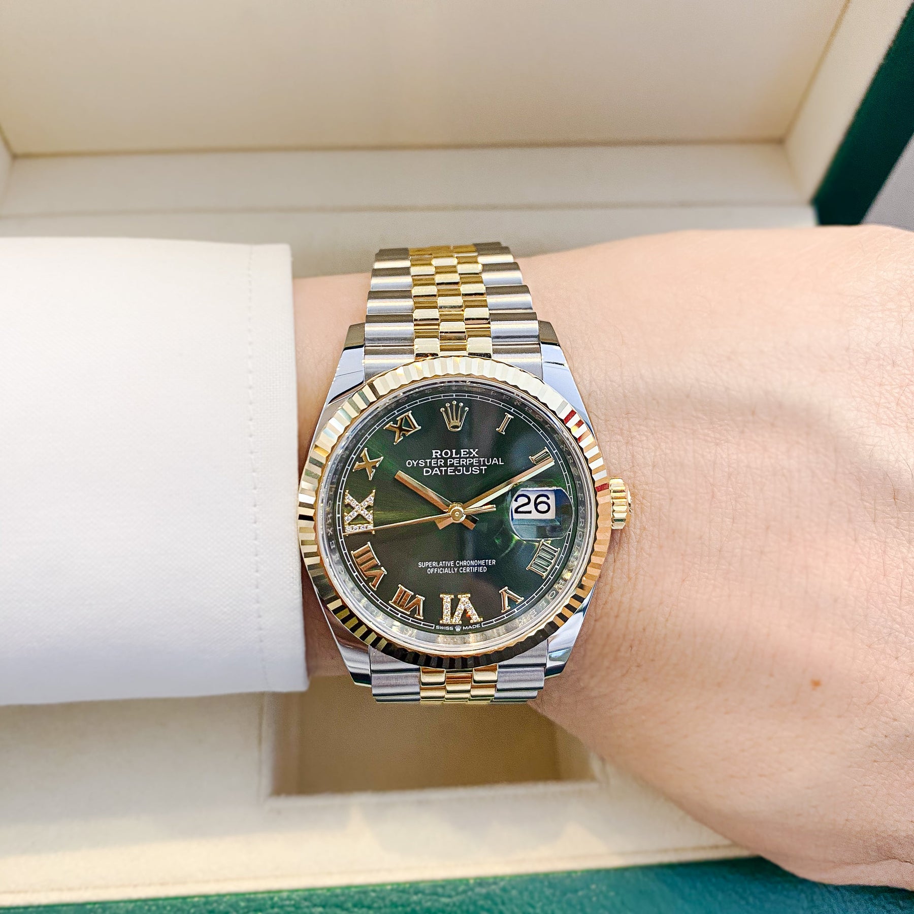 Rolex Datejust36 36mm Steel/YG Green Dial Numeral Markers 2023 Ref m126233-0025 (#499)