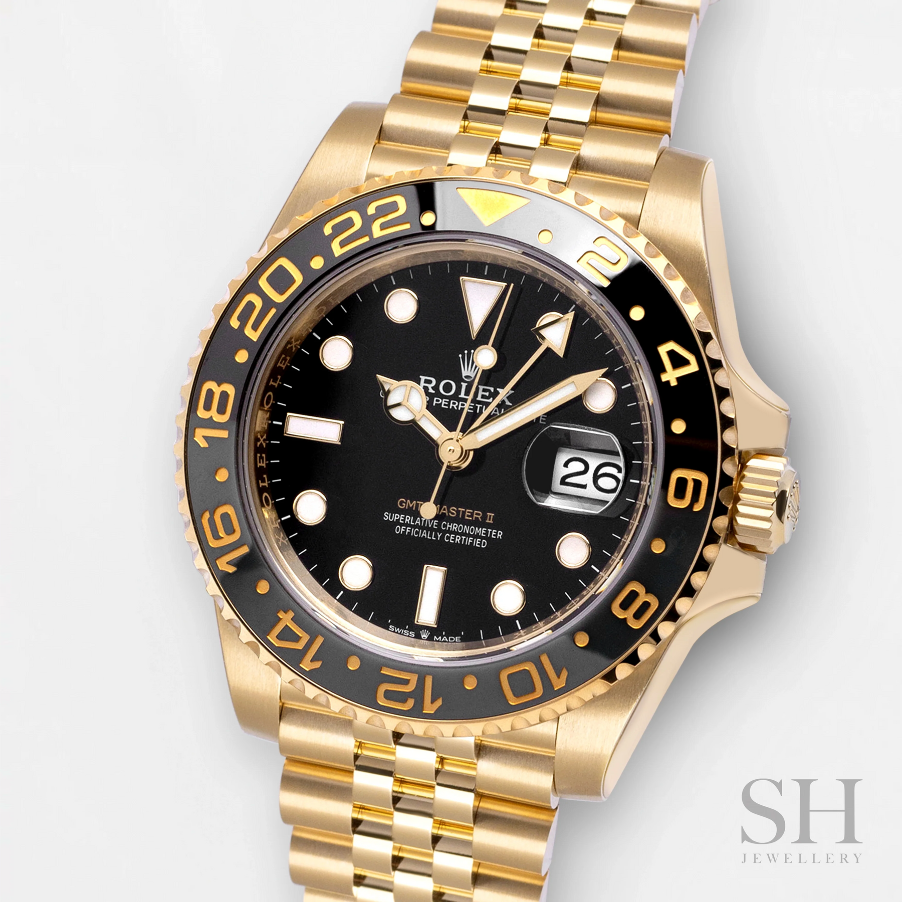 Rolex GMT-Master II 40mm YG Black Dial Button Markers 2024 Ref m126718grnr-0001 (#674)