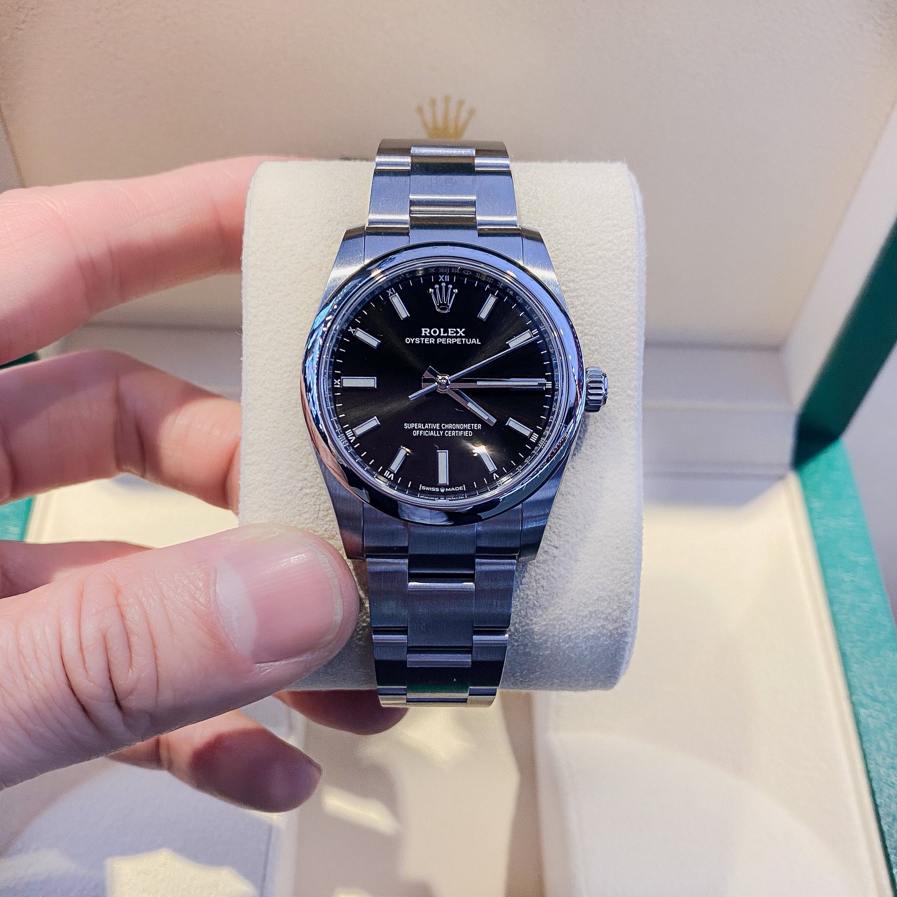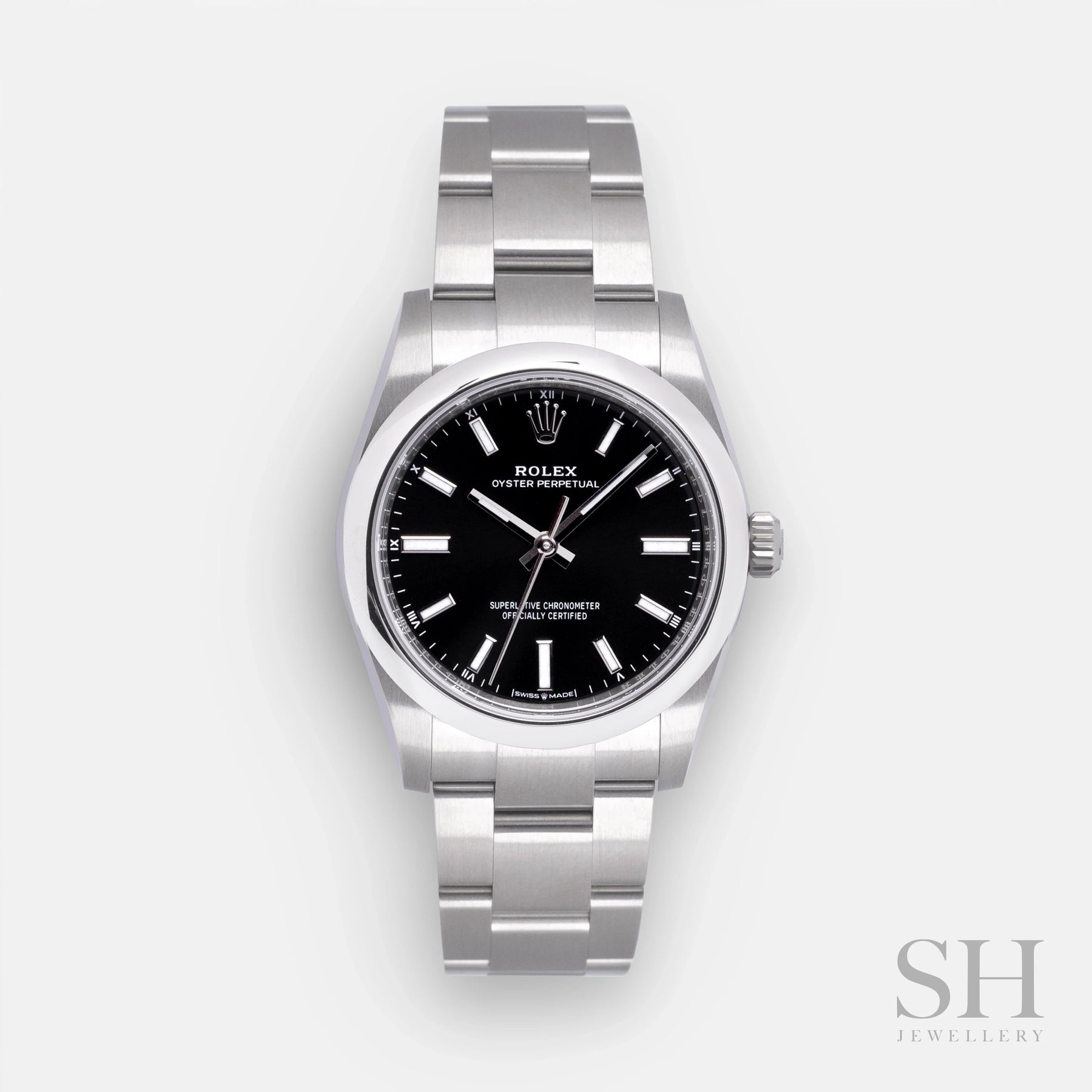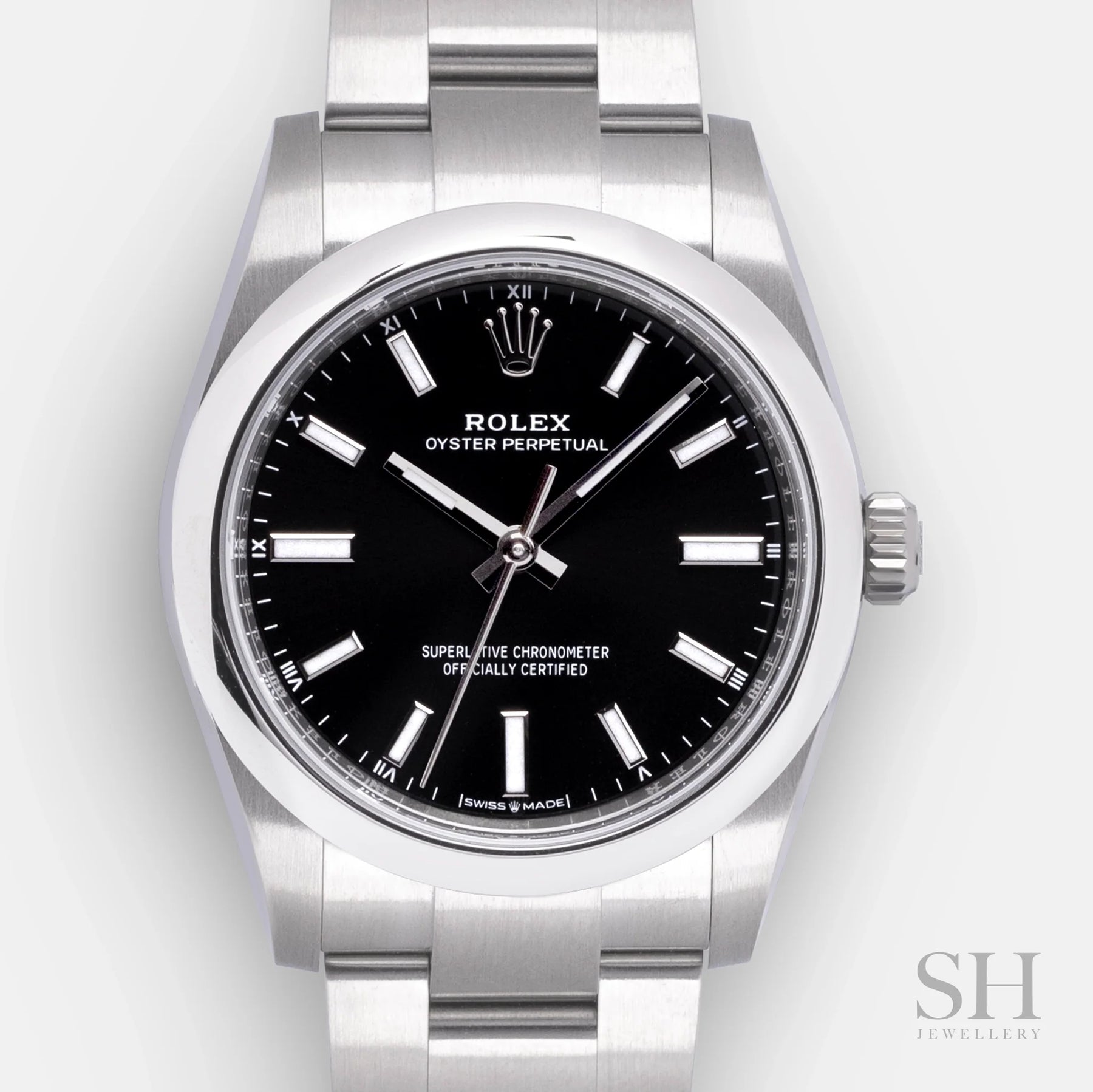 Rolex Oyster Perpetual34 34mm Steel Black Dial Stick Markers 2023 Ref m124200-0002 (#397)