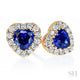 Romantic Heart Shaped Sapphire and Diamond Halo Stud Earrings - W0306