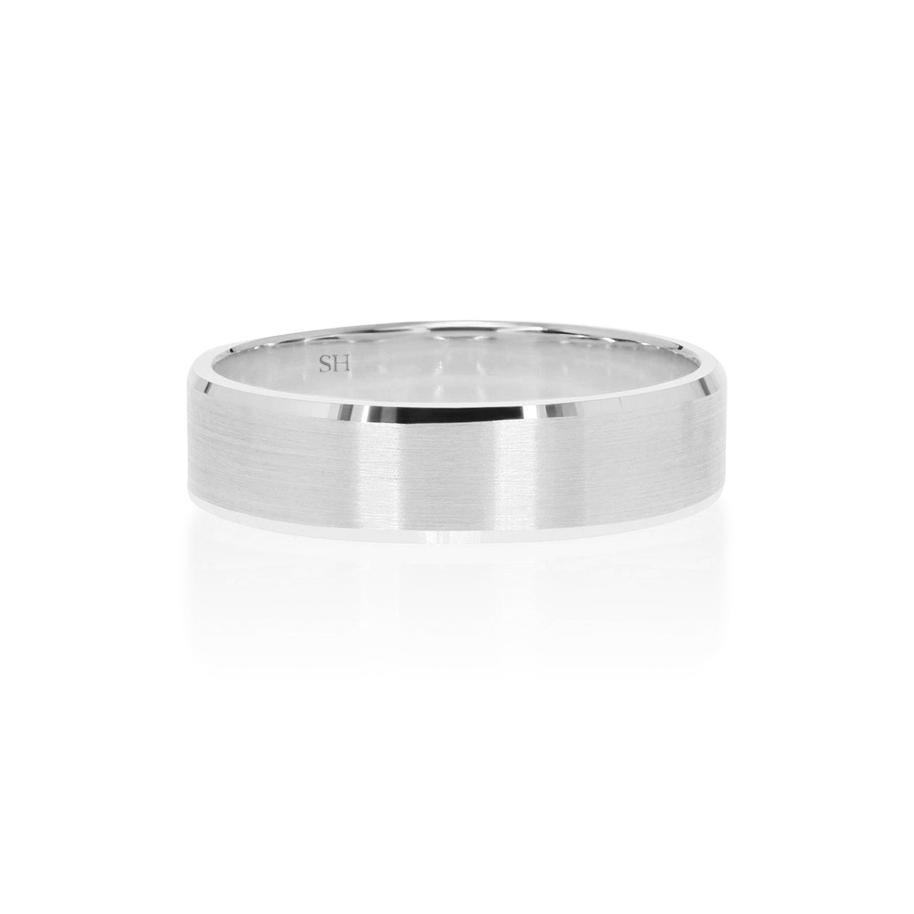 Rose gold satin finish wedding band with bevelled edges (6mm) - W0343