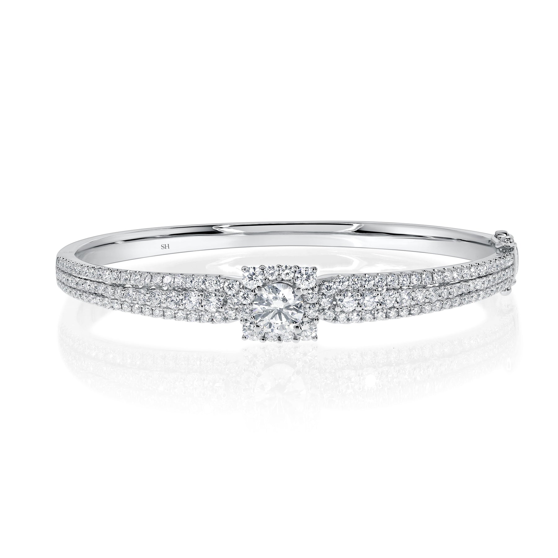 Square Halo Centre in Three Row Bangle (5.5mm) - W0914