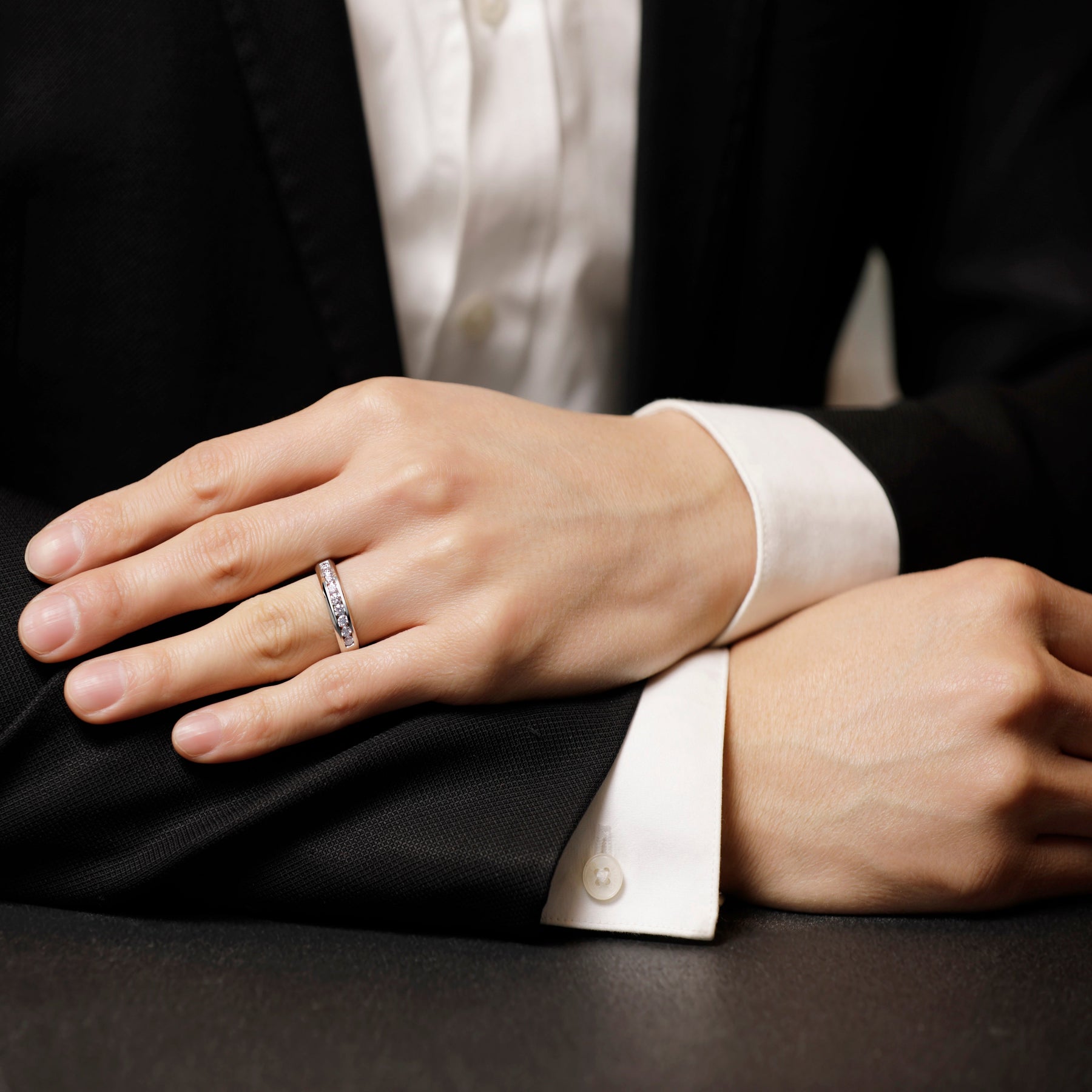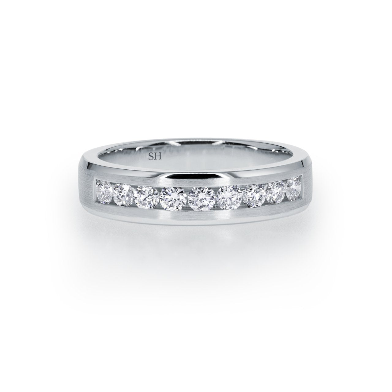White gold channel set diamond band with satin finish (5.5mm) - W0395